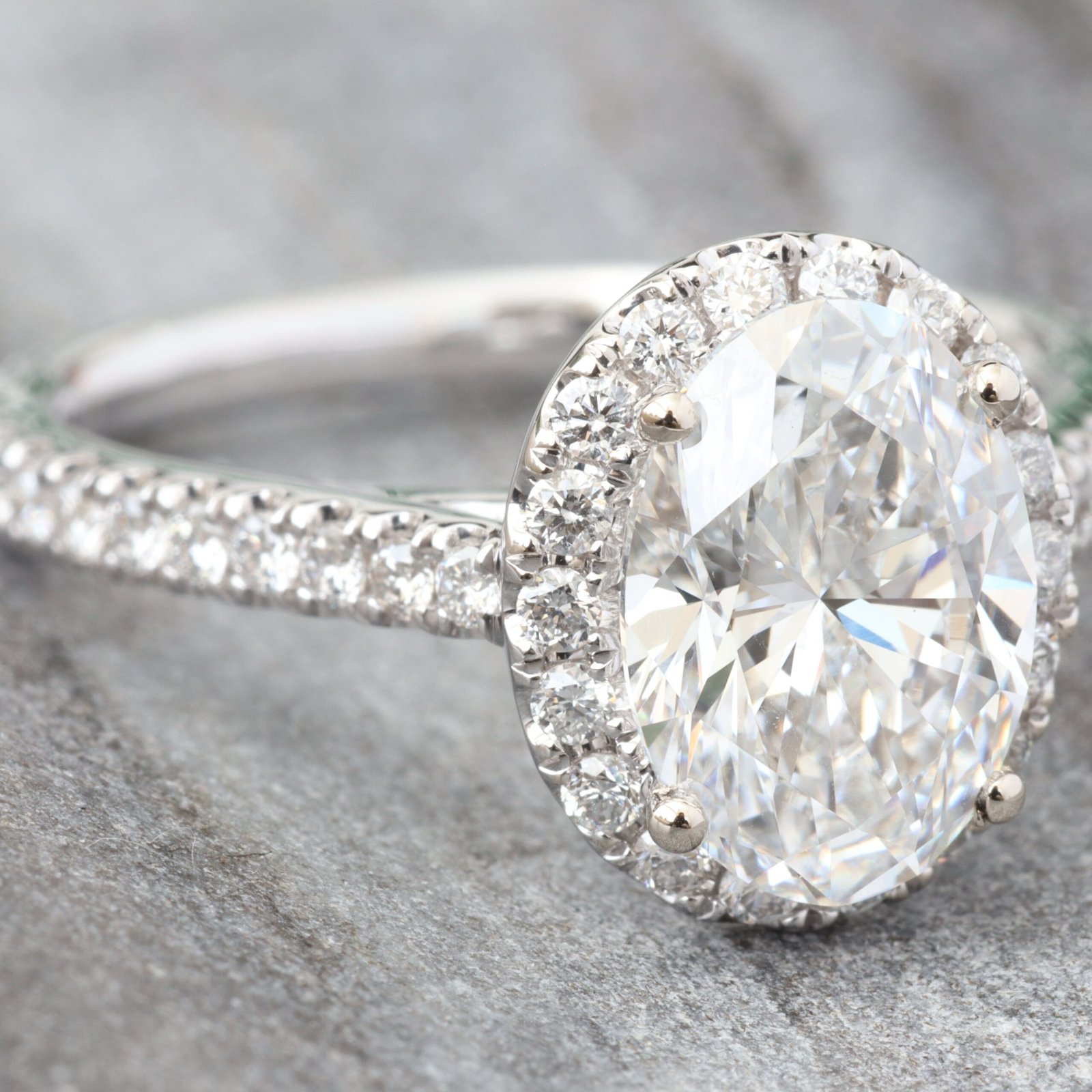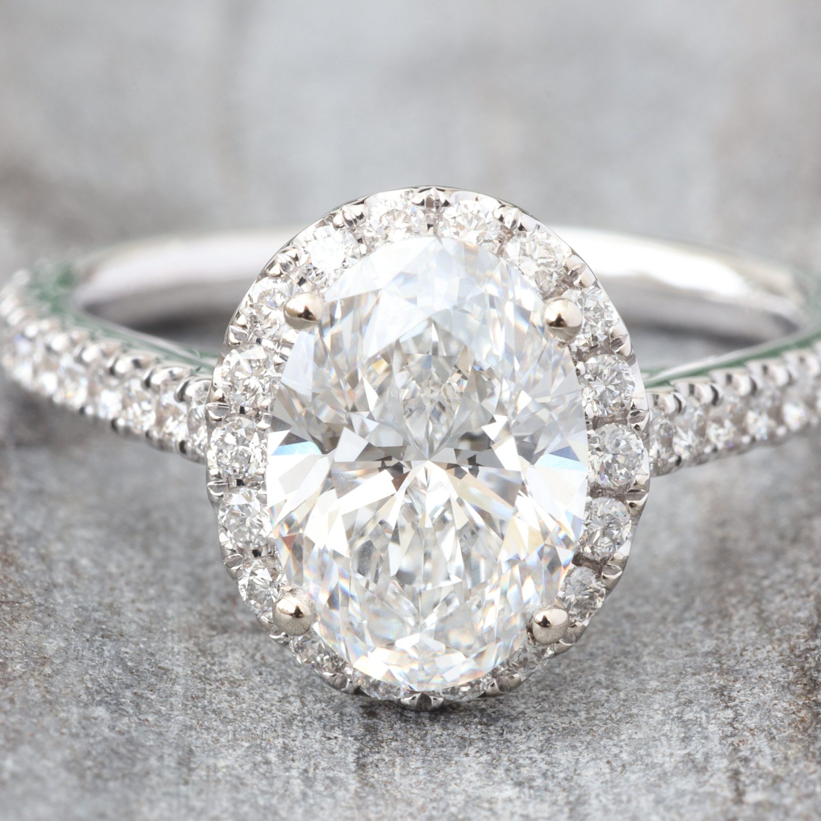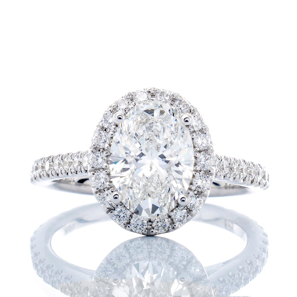 2.13ctw Oval Lab Created Engagement Ring With Pave Halo & Shoulders