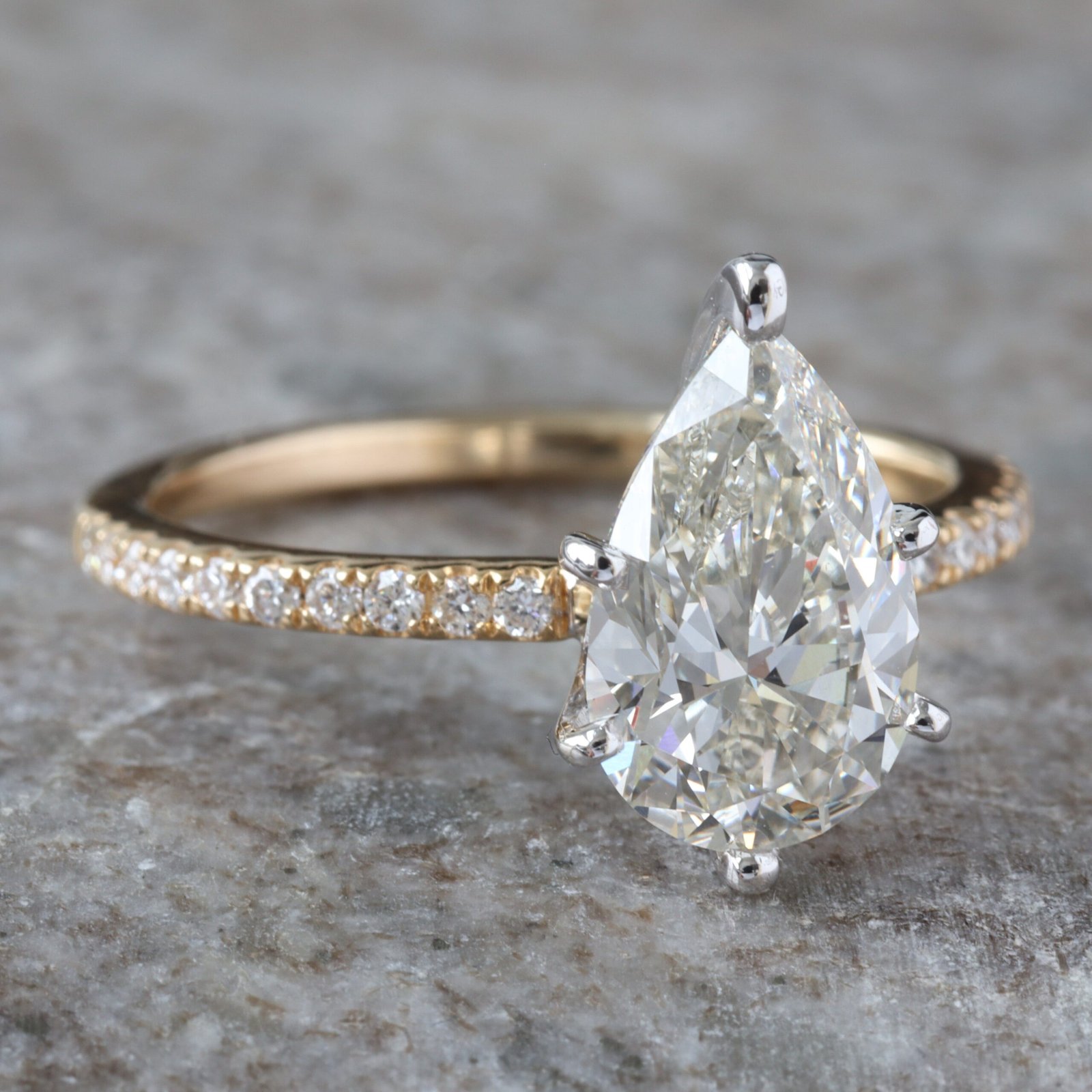 2.23ctw Six Prong Pear Solitaire with Pave Shoulders Ring