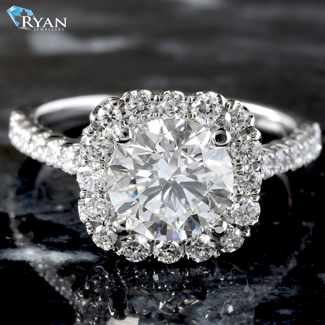 1.71ct Round brilliant cut lab created diamond set into one cushion halo diamond mount totalling 0.70ctw