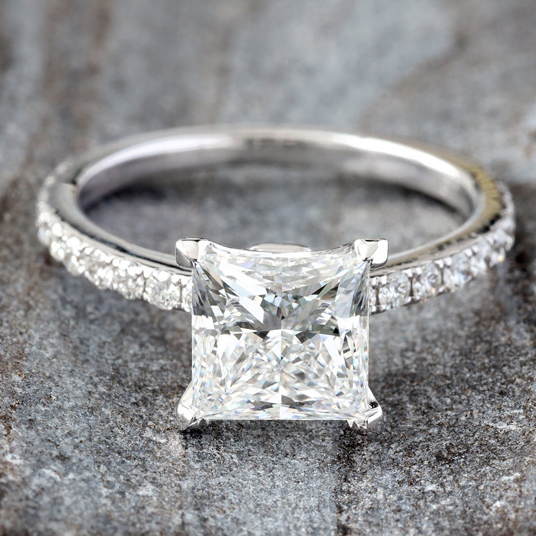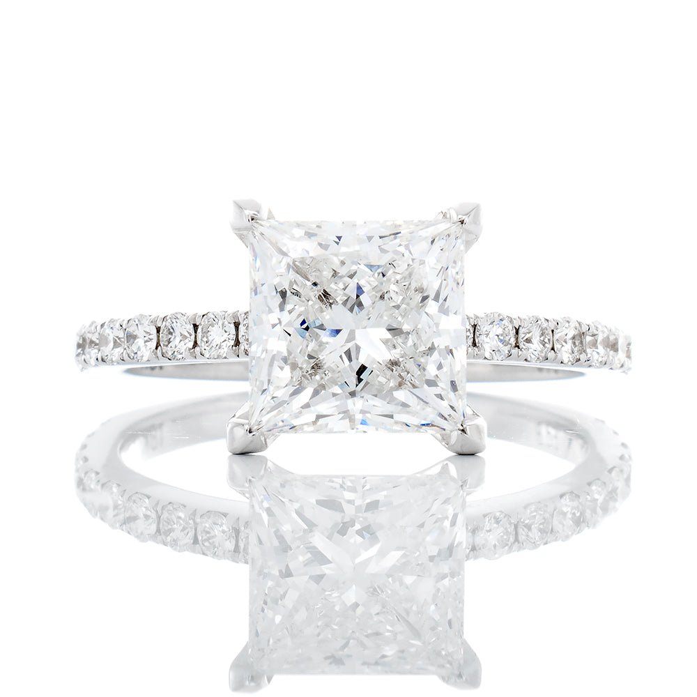 2.48ctw Princess Solitaire with Shared Prong Diamond Shoulders