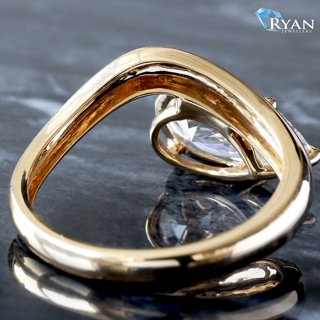 2.50ctw East West Pear Solitaire set on Curved High Polished Shoulders Ring