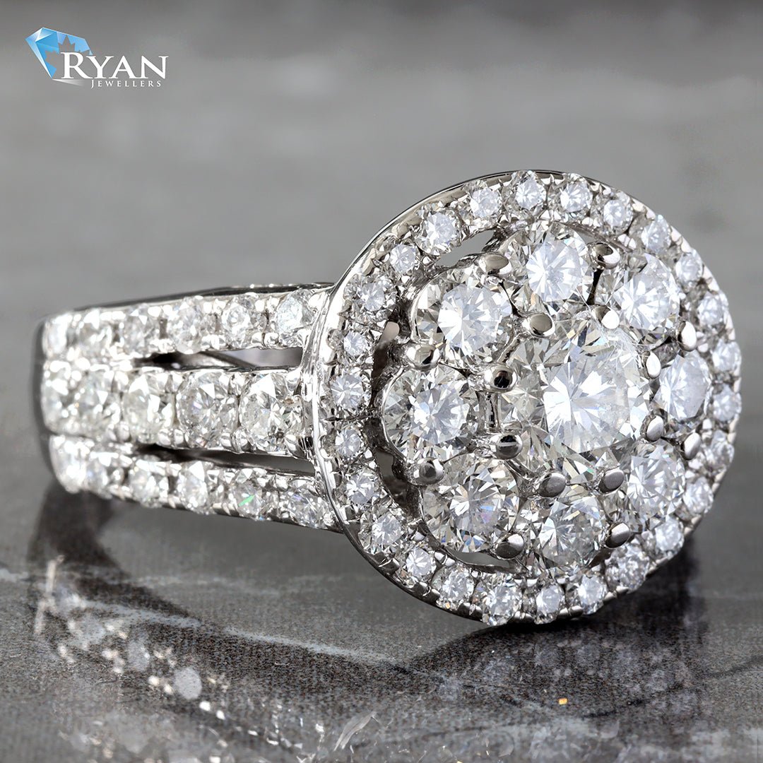 2.50CTW Natural Round Imperial Set Halo With 3 Row Pave Split Shoulders