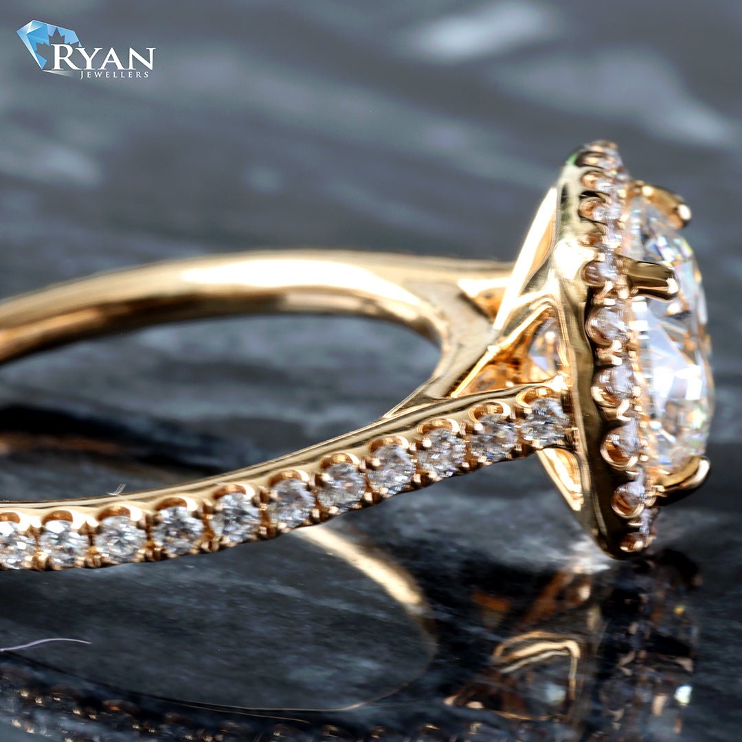 2.60ctw Round Solitaire Cushion Halo with Pave Shoulders Ring