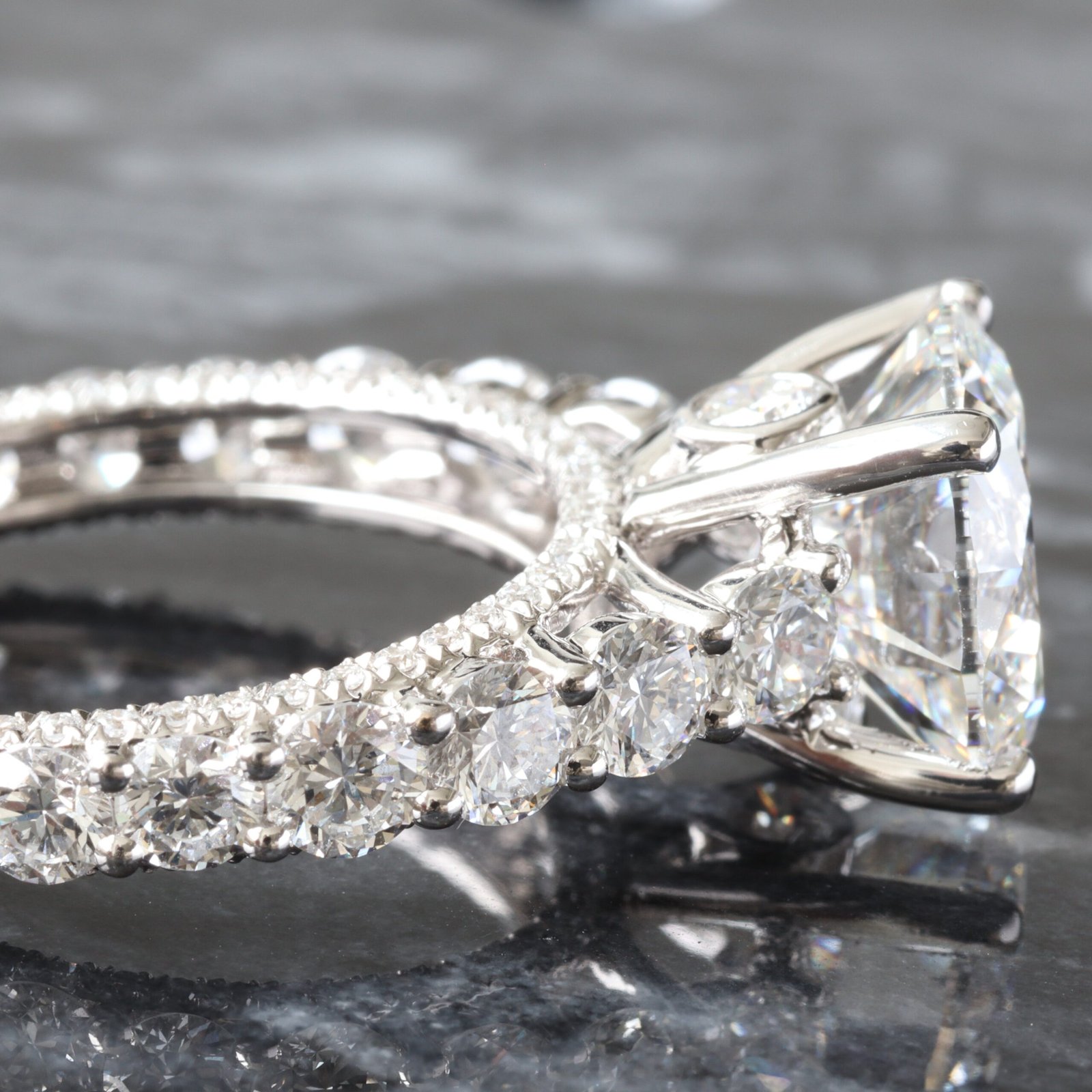 Beautiful 6.60ct Round Solitaire Lab Created Diamond with Graduated Diamond Mount and Bezel Set Head