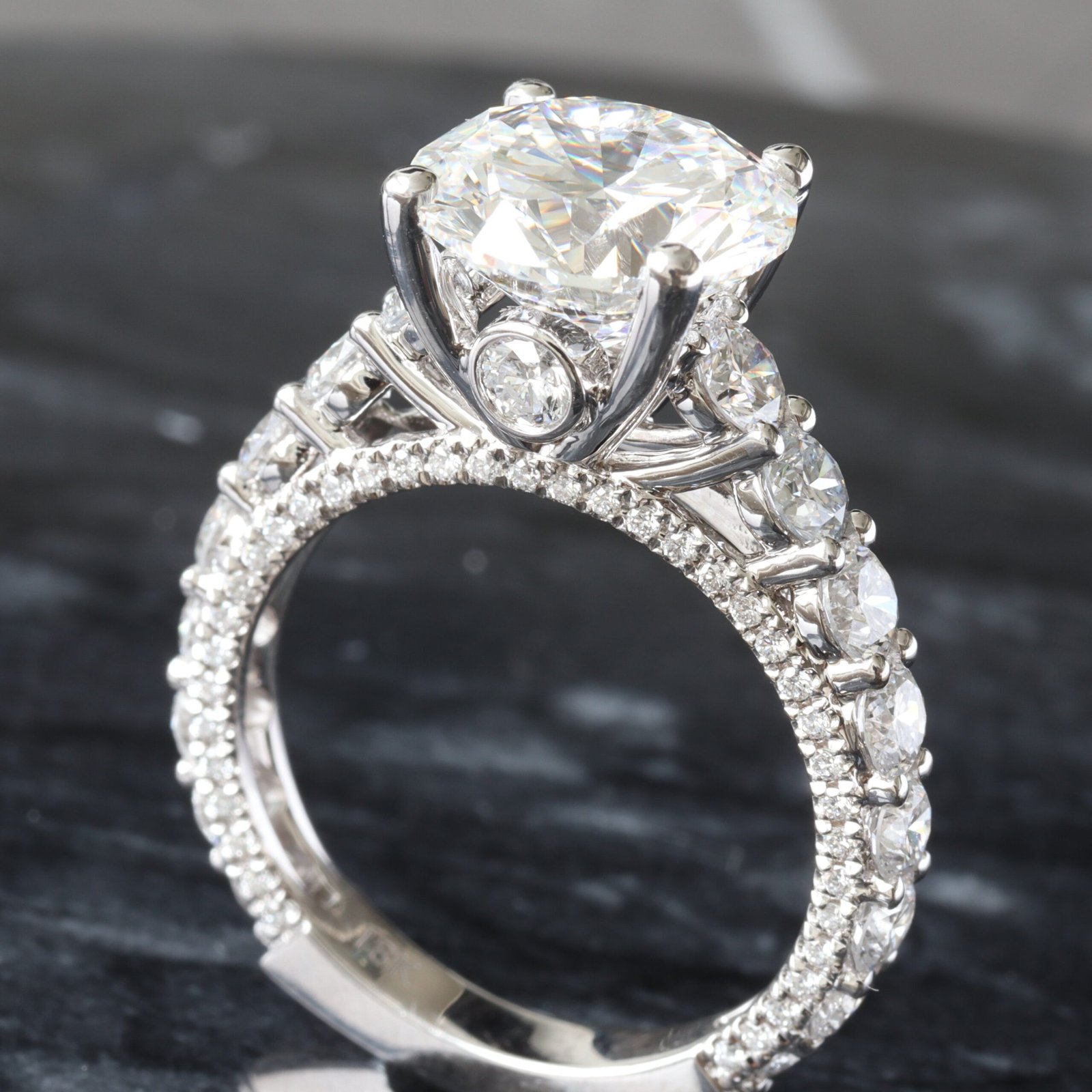 • Lab Created Round Brilliant Cut Center Weight: 4.05 CT