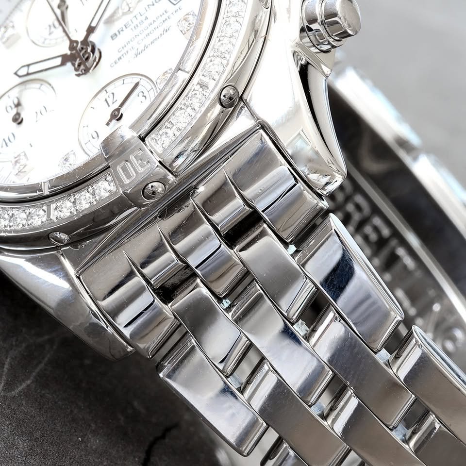 Breitling Chrono Cockpit Factory Diamond Pearl Dial and Factory Diamond Bezel Steel Watch