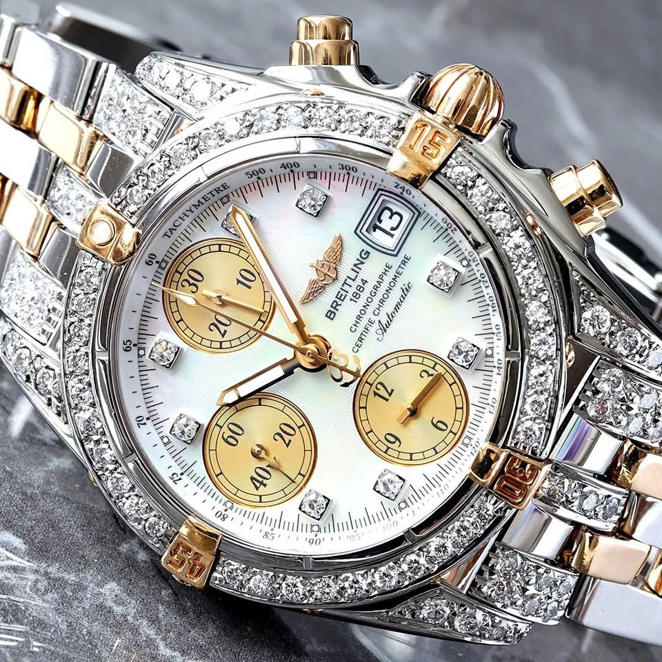 Breitling Chrono Cockpit Pearl Diamond Dial Custom Diamond Set Watch