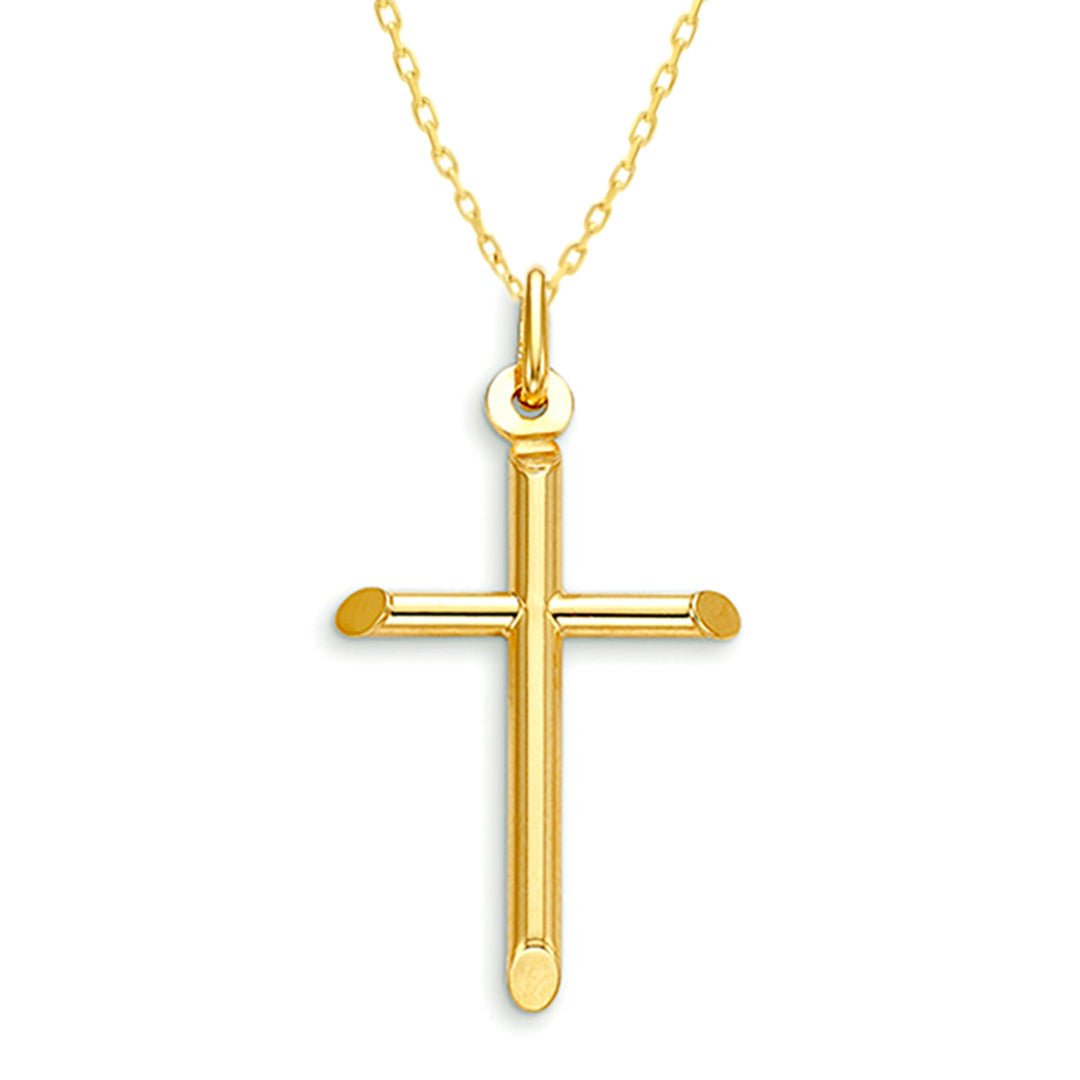 High Polished Tube Beveled Edges Cross Pendant