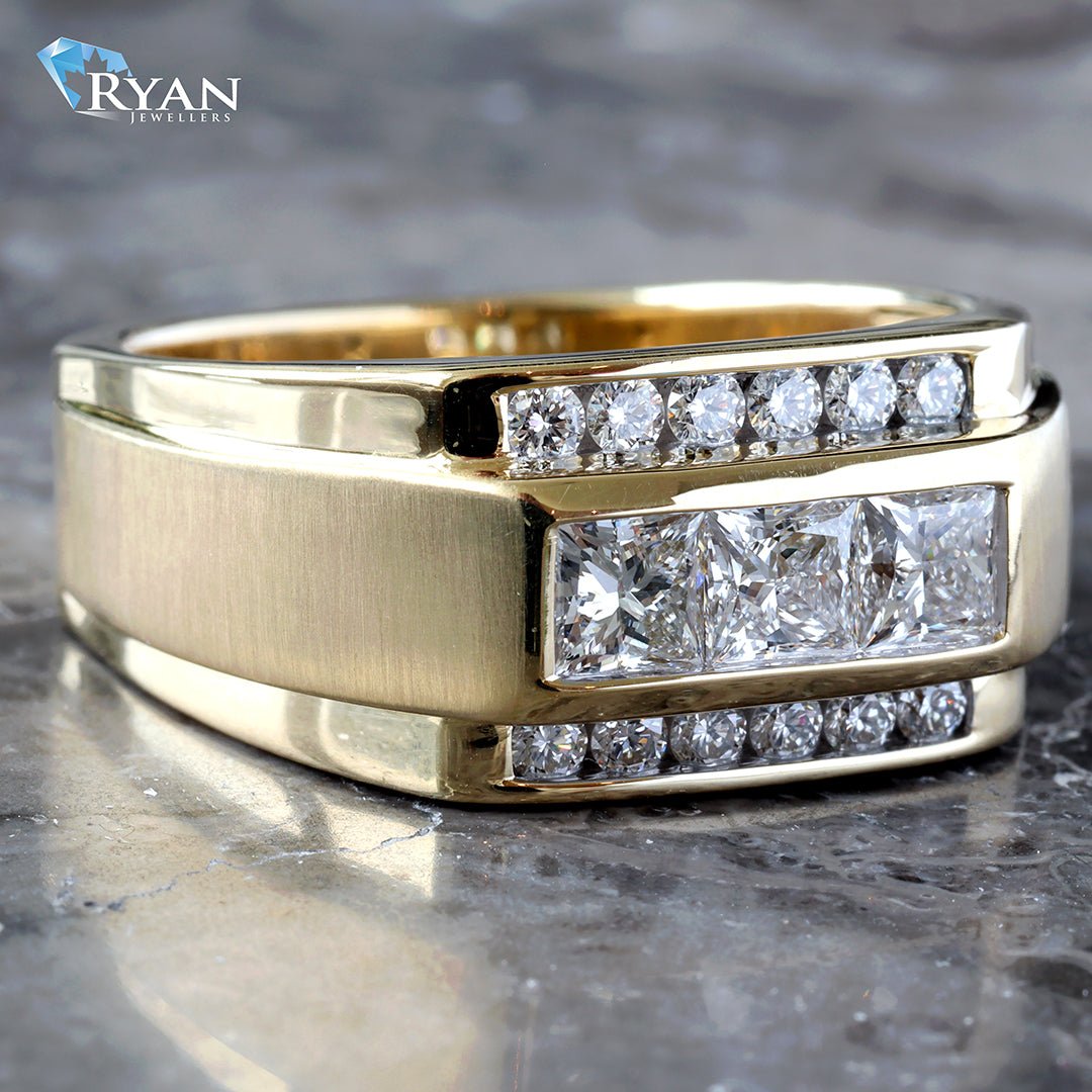 LAB RING GY 10K 1.15CTW THREE ROW TABLE TOP WITH CHANNEL SET PRINCESS CUT CENTER AND SINGLE ROW CHANEL SET ROUND DIAMOND SIDES