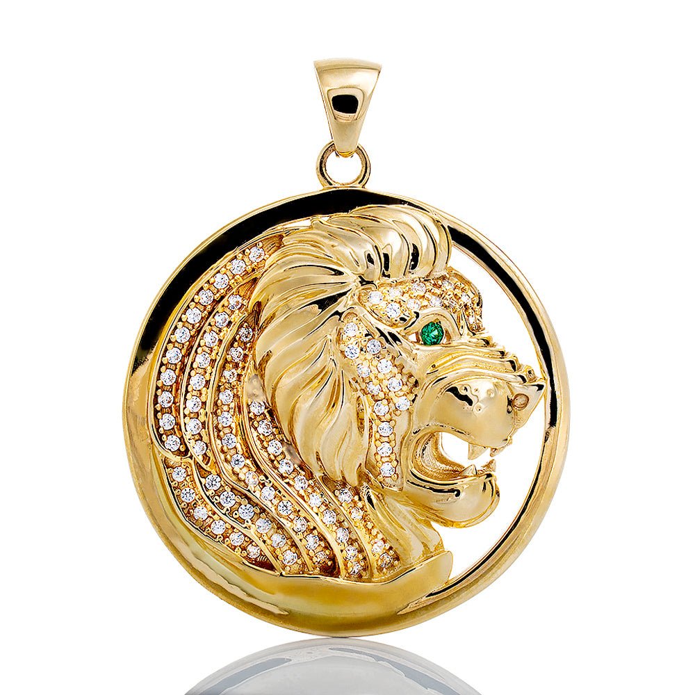 Lion Medallion with Emerald Eyes 10k Gold quantity