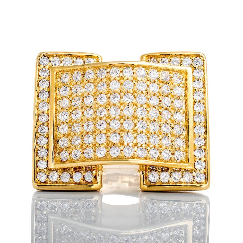 Raised CZ 7 Row Dome Center Split Halo Ring
