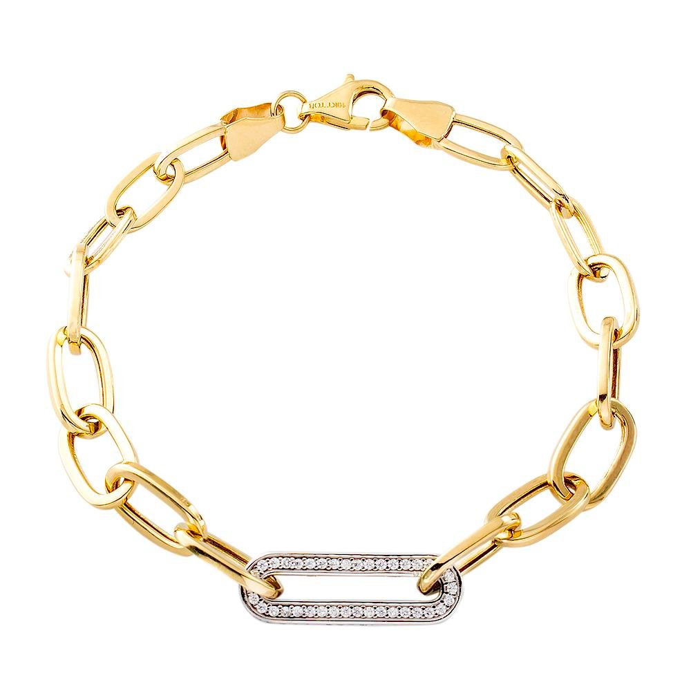 Two Tone CZ Channel Set Paper Clip on Oval Link