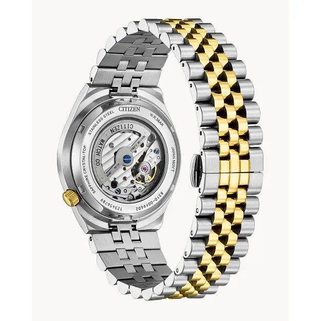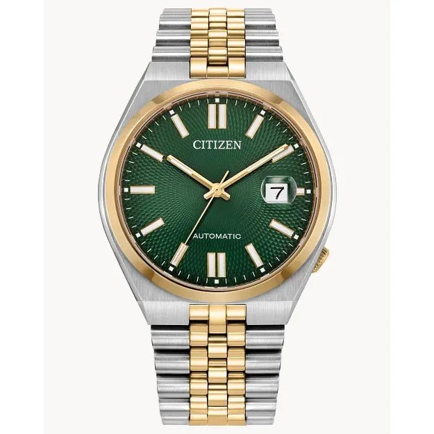 The latest TSUYOSA “60”, brings ultramodern sports styling right to your wrist. Executed in a versatile 40mm footprint, the sophisticated design of the watch makes a strong impression via a two-tone silver- and gold-tone stainless steel case and a seamlessly integrated, five-link bracelet. Underneath an anti-reflective sapphire crystal, the sporty timepiece makes use of a finely machined, sunray green dial, with a 3 o’clock date window and more gold-tone details adding to its eye-catching aesthetic. Powered by an automatic movement and offering up to 50 metres of water resistance and a 60-hour power reserve, the refined timepiece is a daily-wear choice ready for work, play, and everything in between. Calibre 8310.
