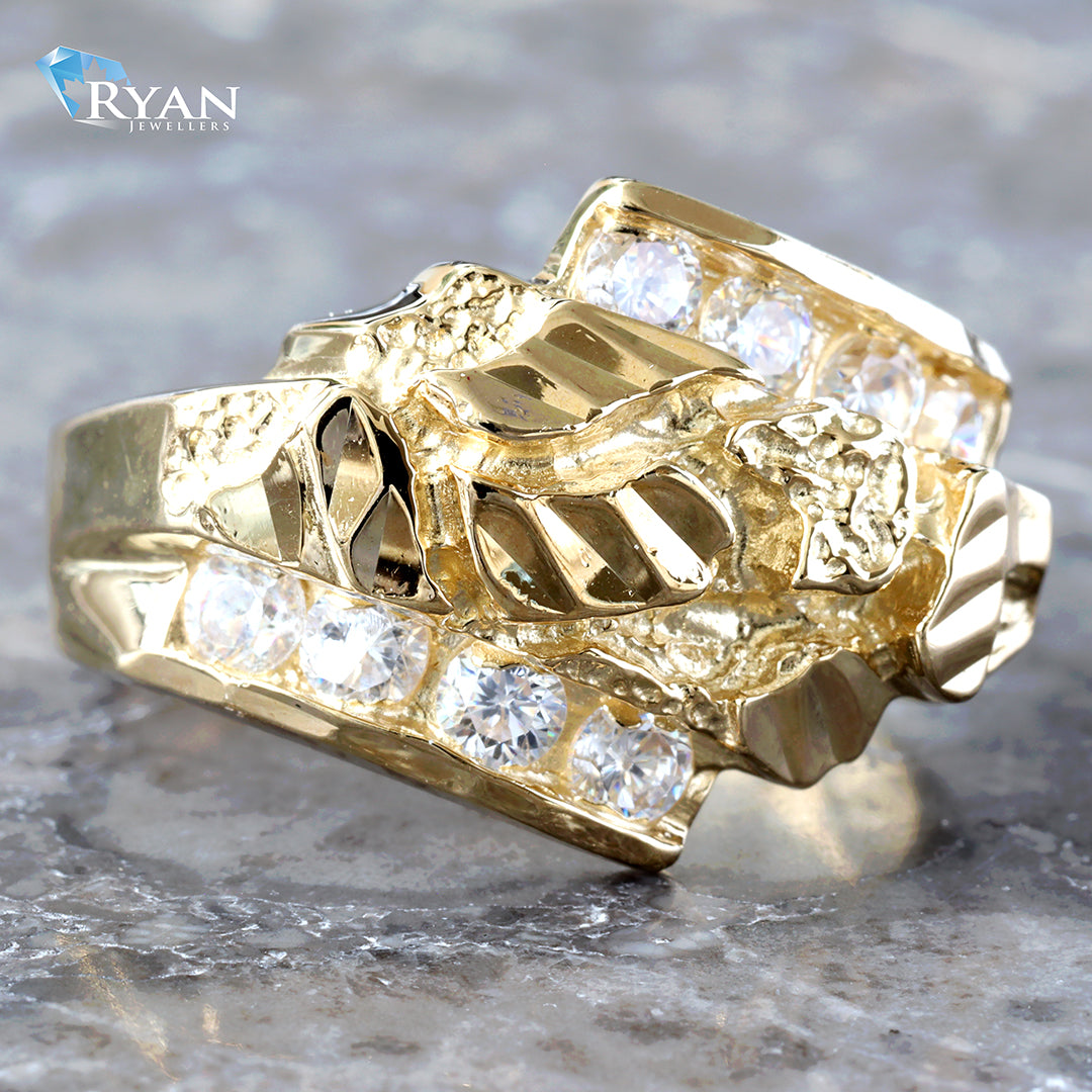Diamond Cut Nugget Ring W/ Cubic Channel Cross Over
