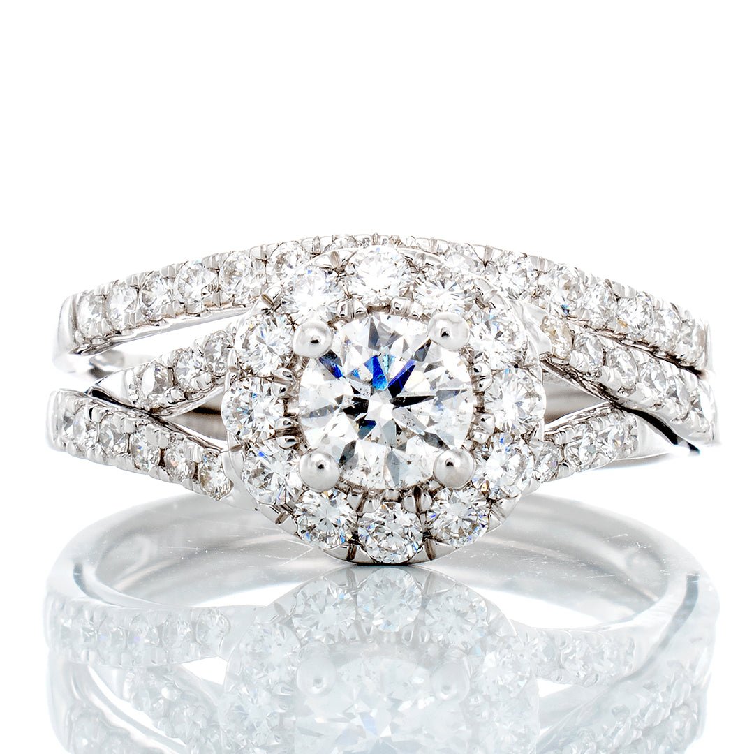 1.00CTW Natural Diamond Pave Halo Cross Over band with Matching Contouring Band