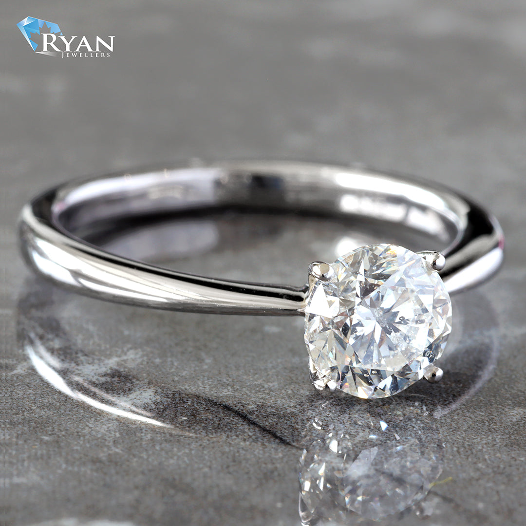 RING GW 18KT 1.00CTW ROUND SOLITAIRE FOUR PRONG SET HIGH POLISHED TAPERED KNIFE SHOULDERS