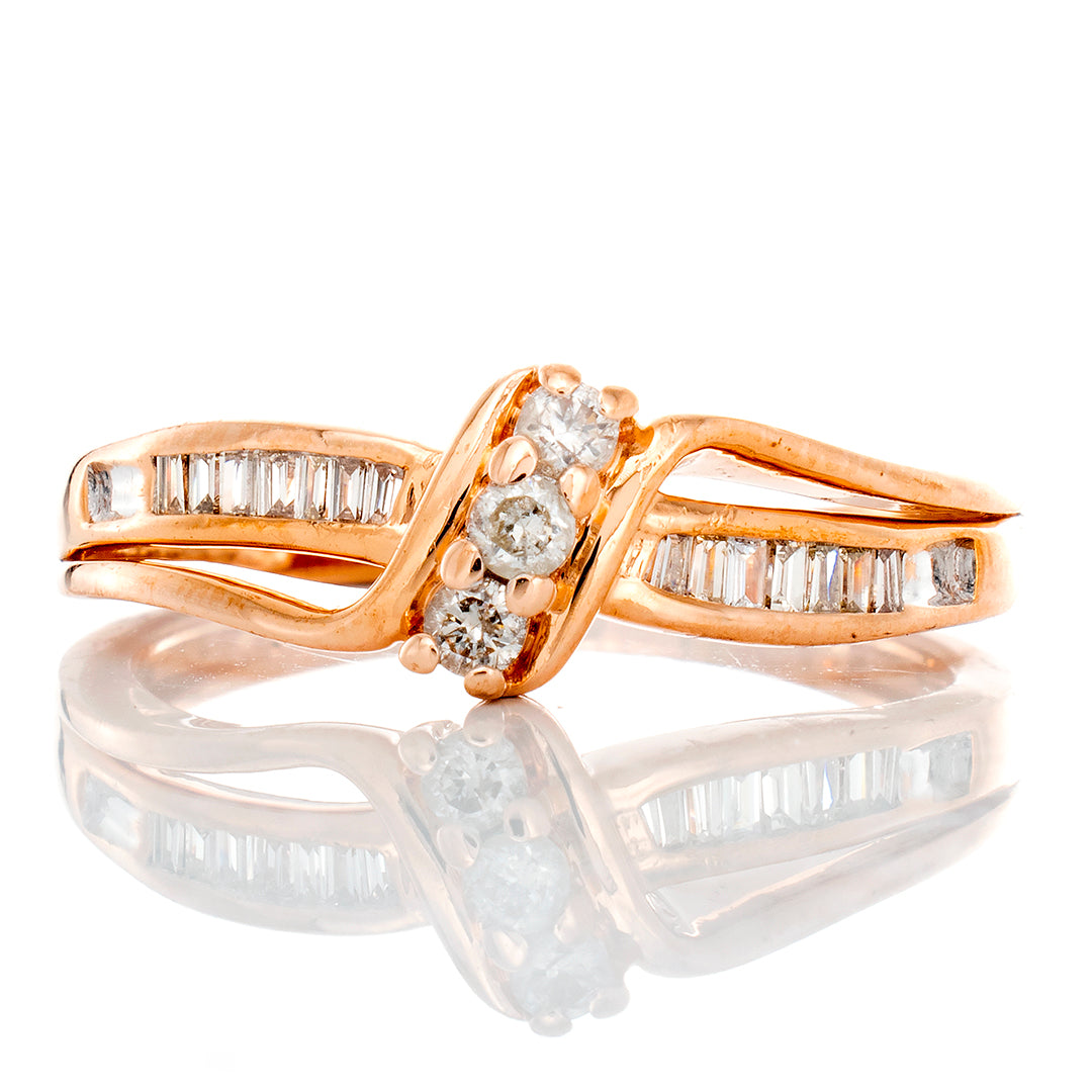 RING GR 10K 0.15CTW DIAMOND THREE STONE BAGUETTE CHANNEL CROSS OVER DESIGN
