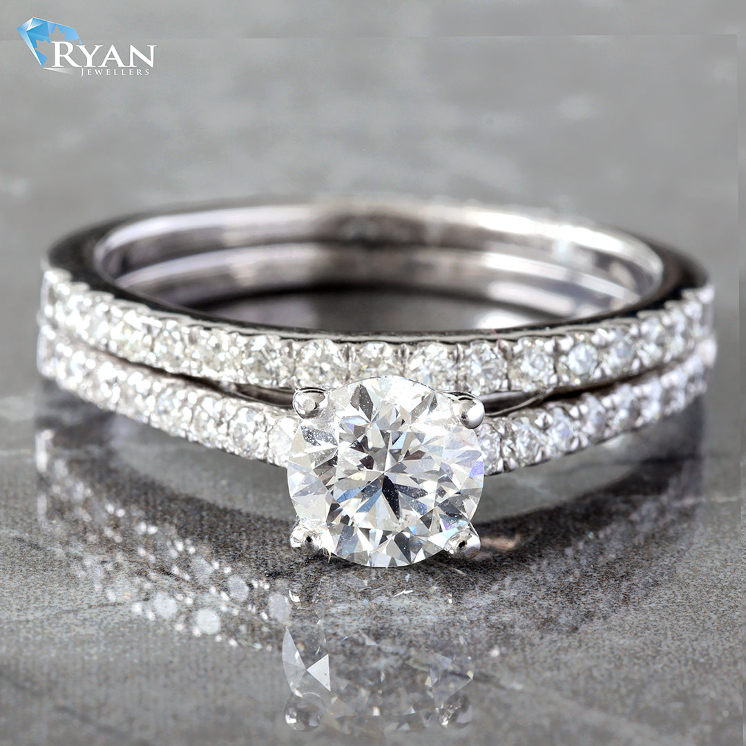 1.25CTW Natural Classic Round Diamond Pave Bridal Set Engagement Ring