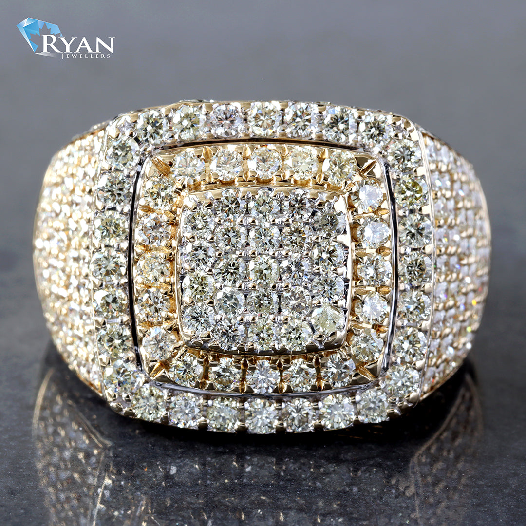 RING GY 10K 4.00CTW DIAMOND PAVE SET SOFT SQUARE THREE TIER IMPERIAL HALO WITH PAVE SHOULDERS N&S