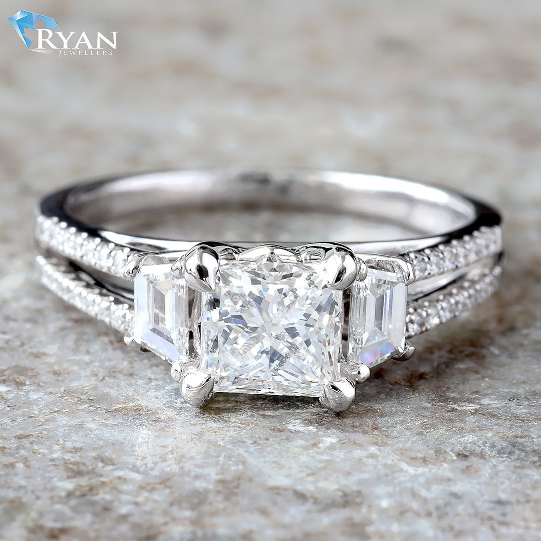 1.68CTW Natural Baguette Sides with Round Natural Diamond Center and Split Shoulders