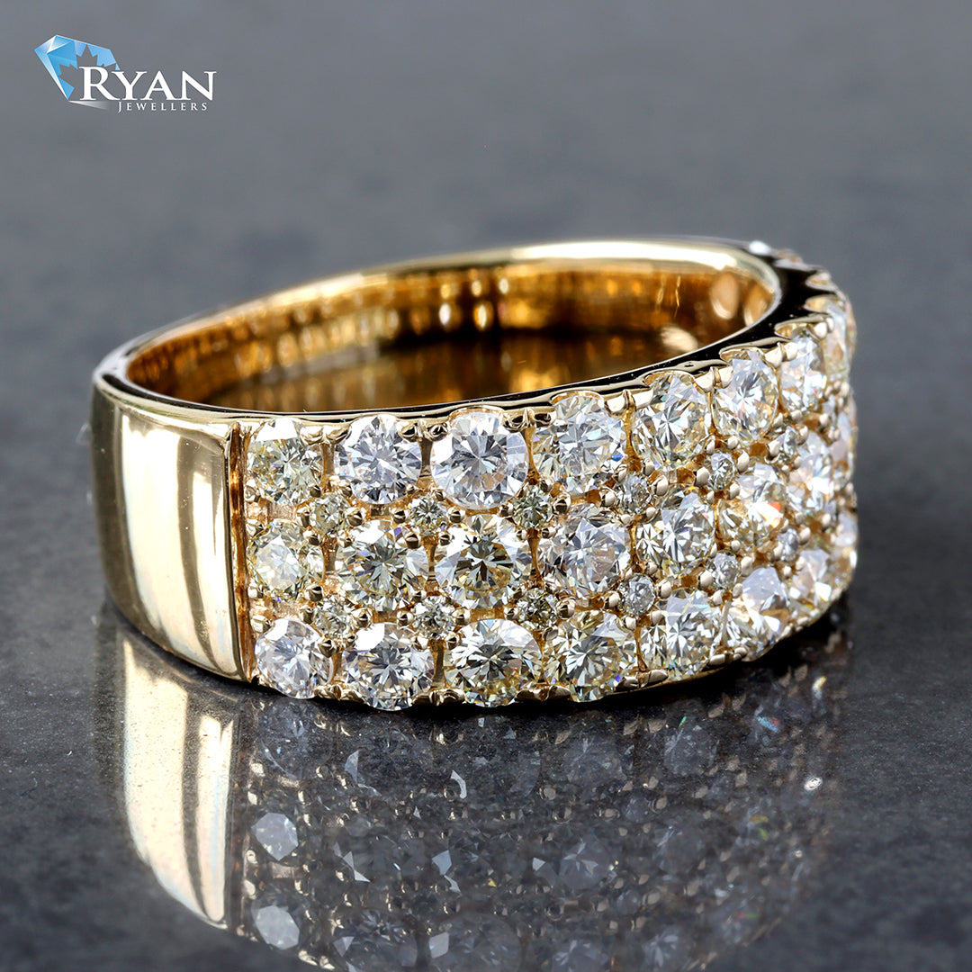 RING 10K GY 2.30CTW MENS THREE ROW SLIGHTLY GRADUATED DIAMOND BAND