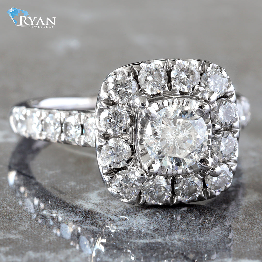 2.00CTW Diamond Illusion Solitaire W/ Pave Cushion Halo and Shoulders