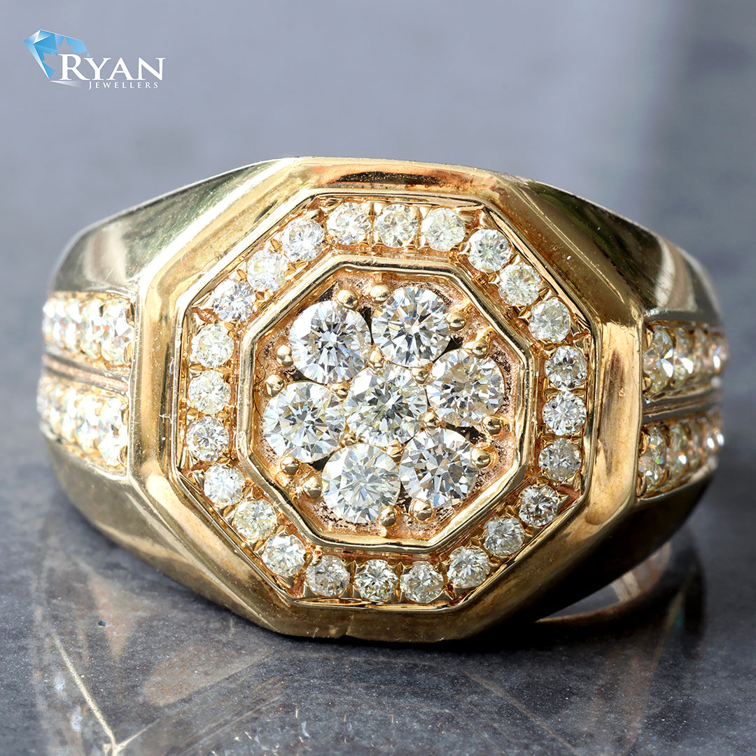 RING GY 10K 1.33CTW FLOWER CLUSTER OCTAGON HALO TWO ROW PRONG SET SHOULDERS