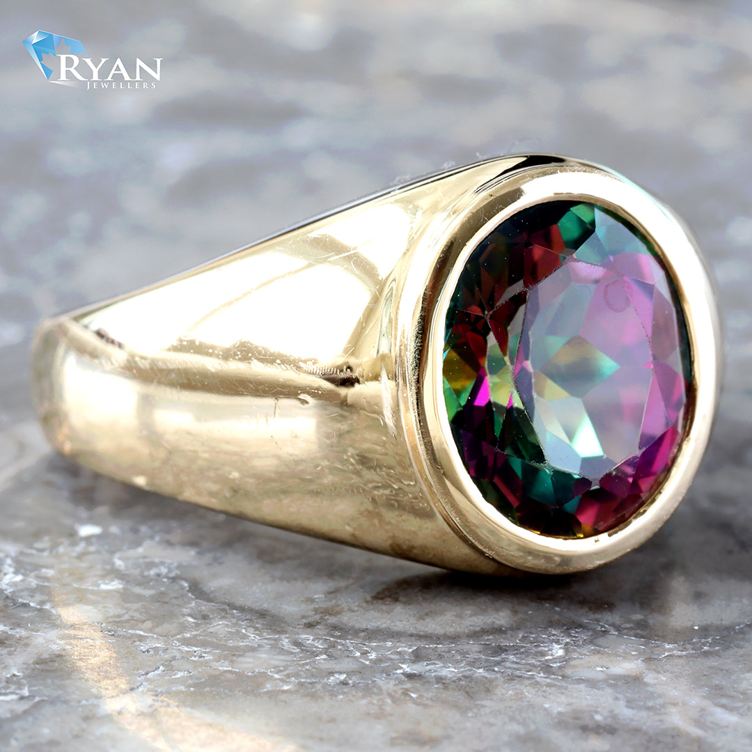 5.00 Carat Oval Mystic Topaz Bezel Set Ring