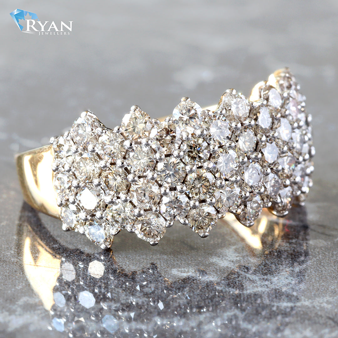 RING GY 10K 2.00CTW SEVEN ROW JAGGED SHARED PRONG SET BAND