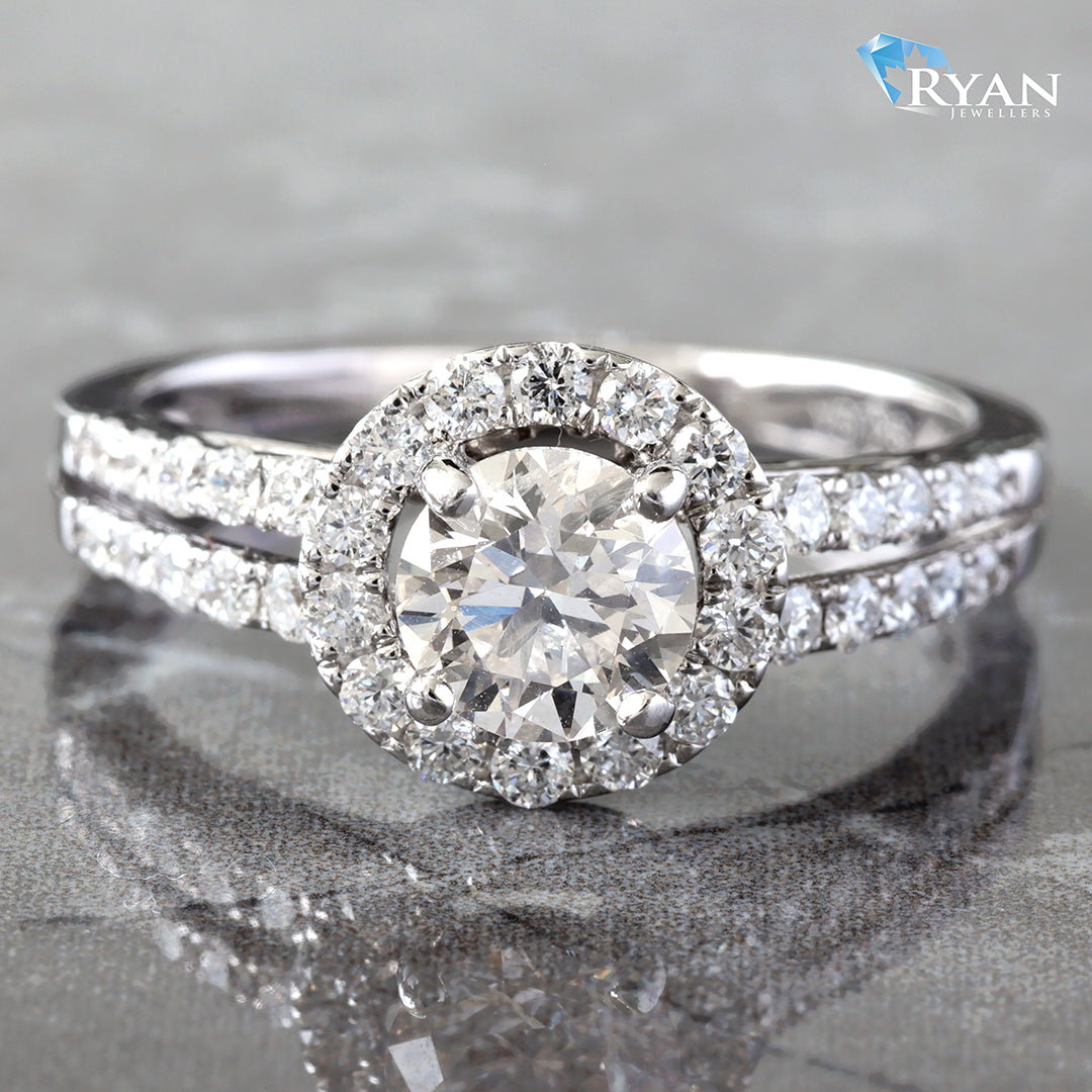 Round Cut Halo and Split Shoulders