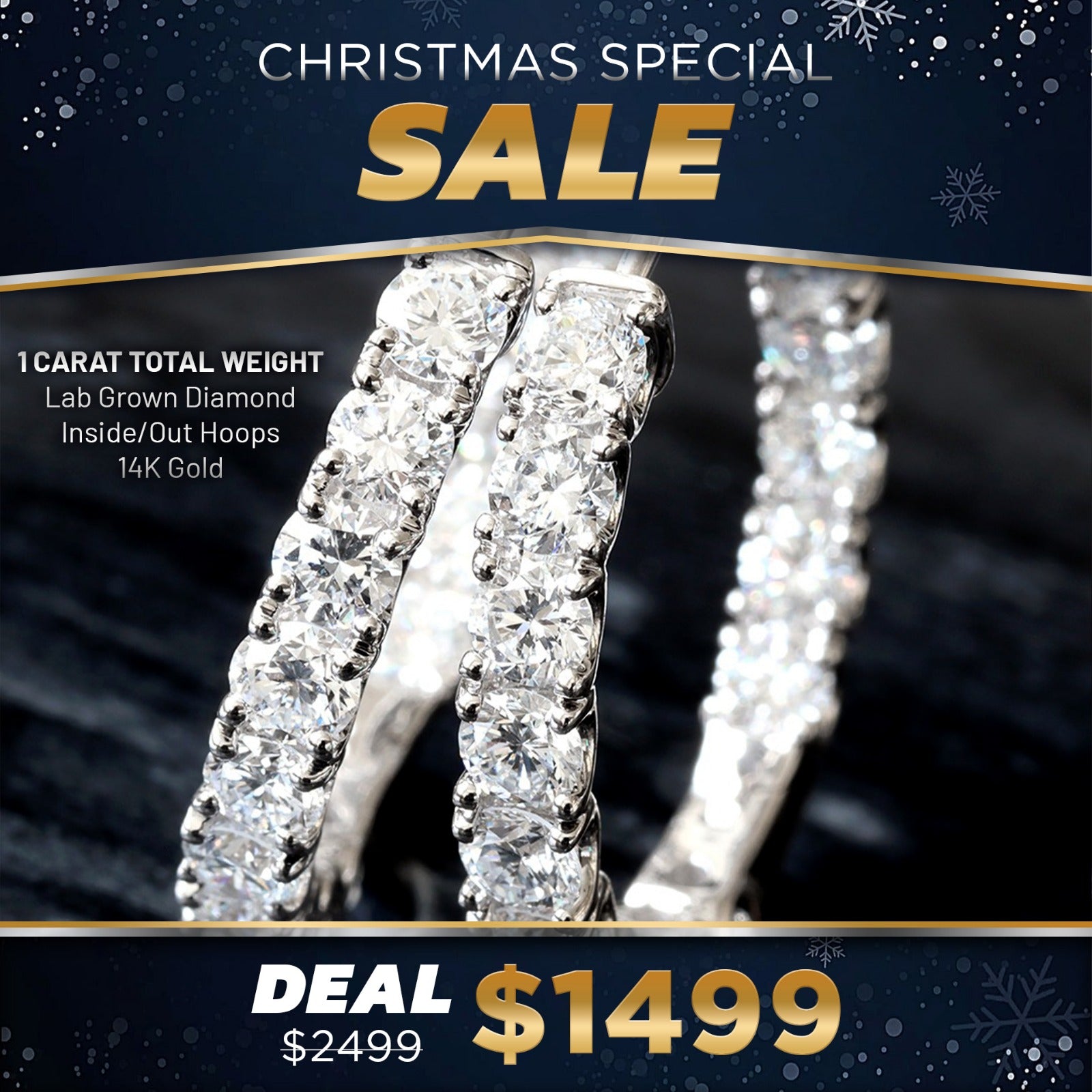 1.00ctw Shared Prong Inside-out Hoops with Secure Lock