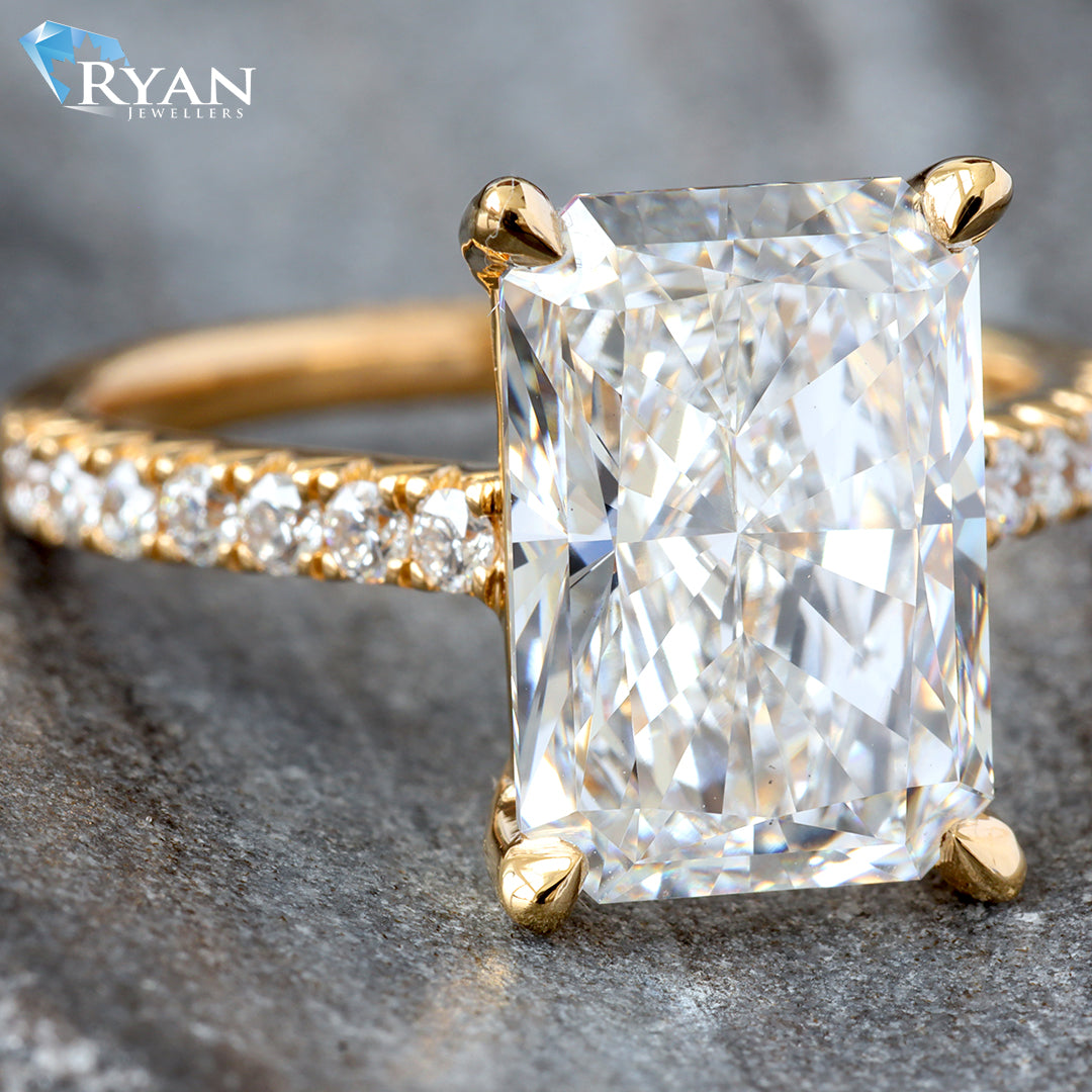 4.80ctw Radiant Lab Created with Natural Upswept Diamond Shoulders