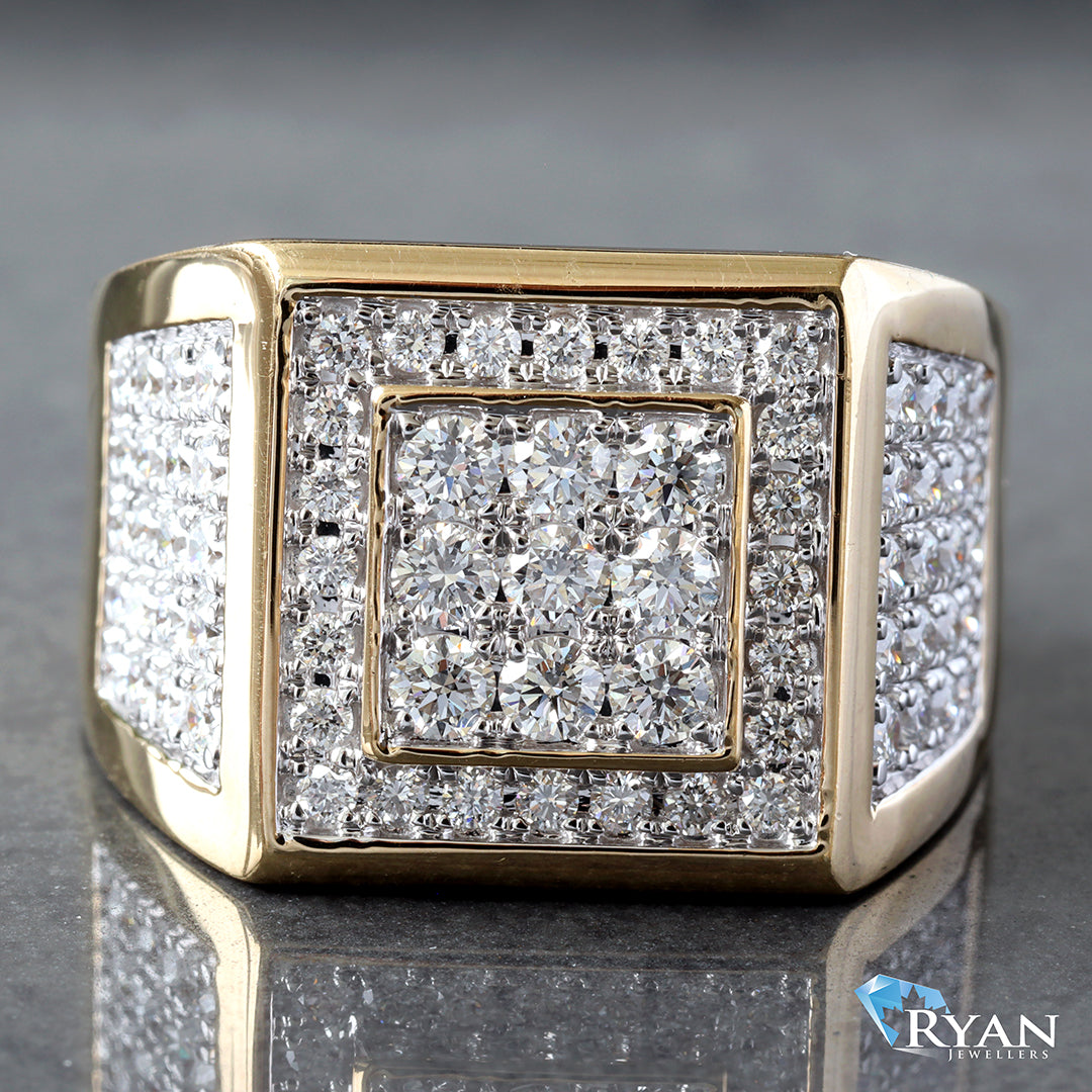 Lab Created Men's Diamond Table Top Ring, Slight Raised Center with High Polished Sleek Lines & Diamond Shoulders