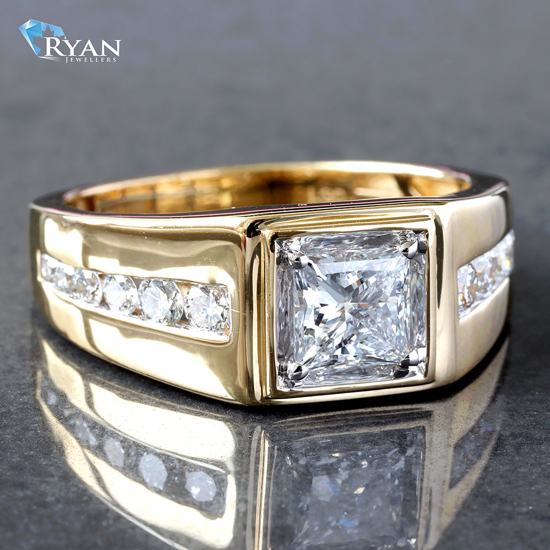 LAB RING GY 10K 1.50CTW PRINCESS CUT SOLITAIRE WITH CHANNEL SET DIAMOND SHOULDERS