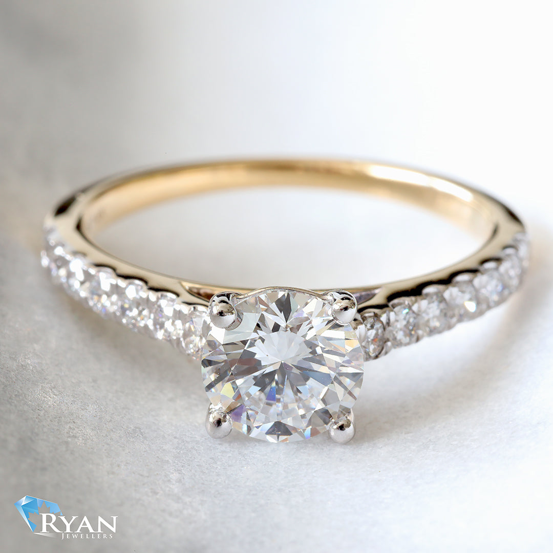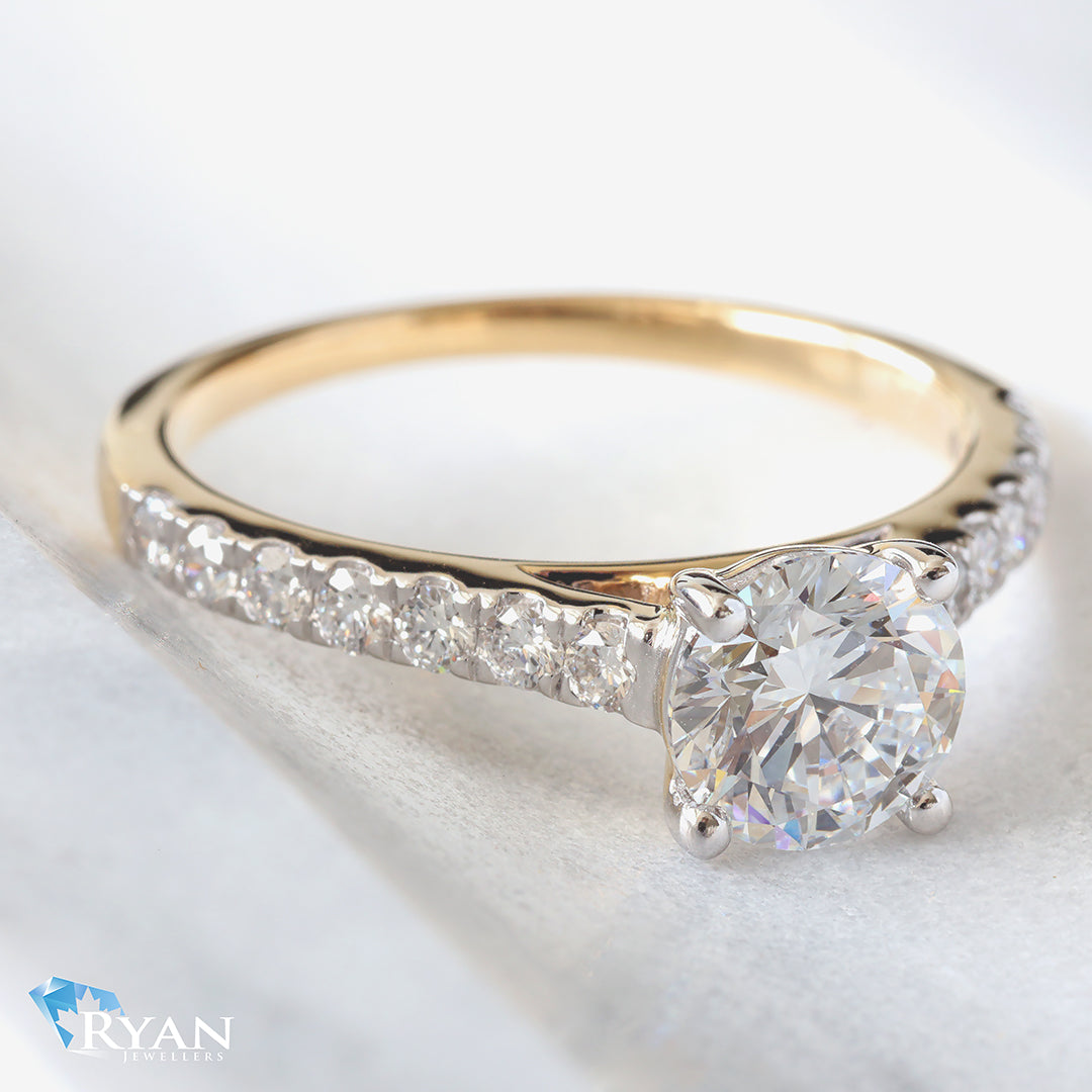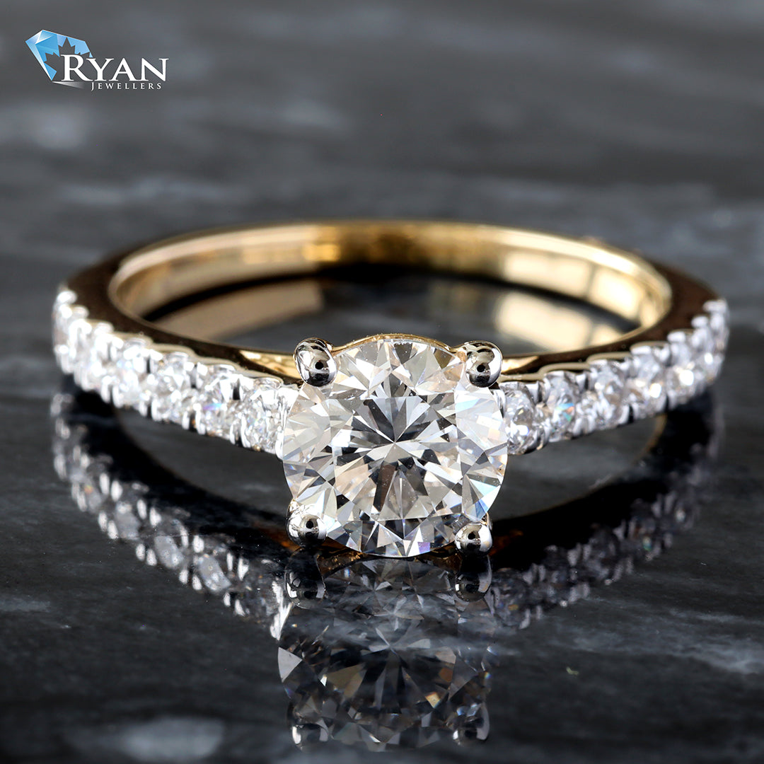 1.35CTW Round Solitaire with Diamond Pave Shoulders Yellow Gold Ring