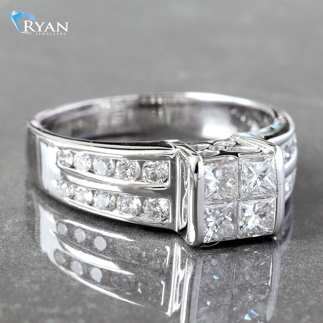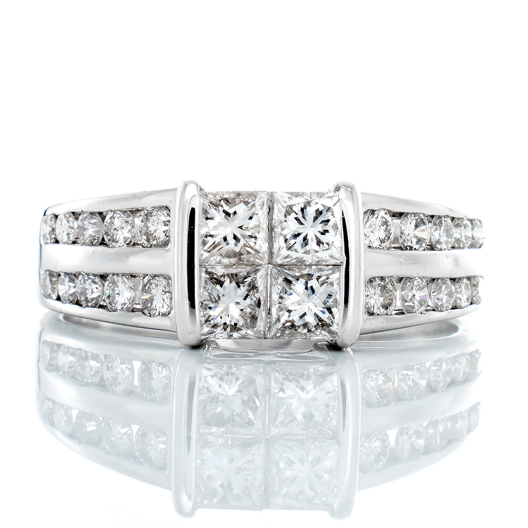 RING GW 14K 1.00CTW QUAD PRINCESS CENTER WITH QUAD CHANNEL SET GRADUATED SHOULDERS