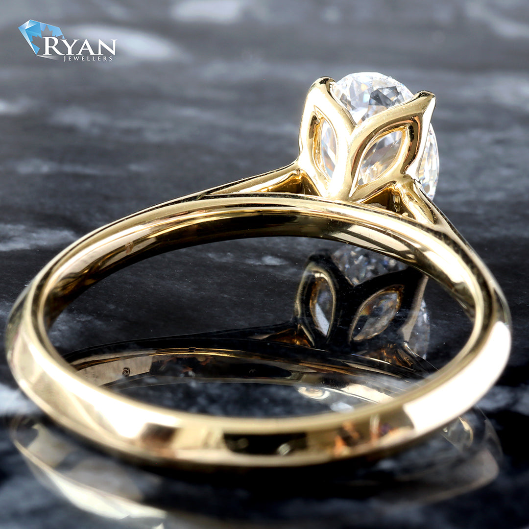 LAB RING GY 10KT 1.00CT OVAL SOLITAIRE HP CATHEDRAL KNIFE EDGE PETAL BASKET