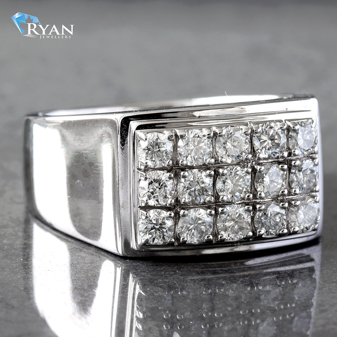 Earth Mined Mens Diamond Table Top Ring Featuring a 3x5 diamond forefront with high polished shoulders.