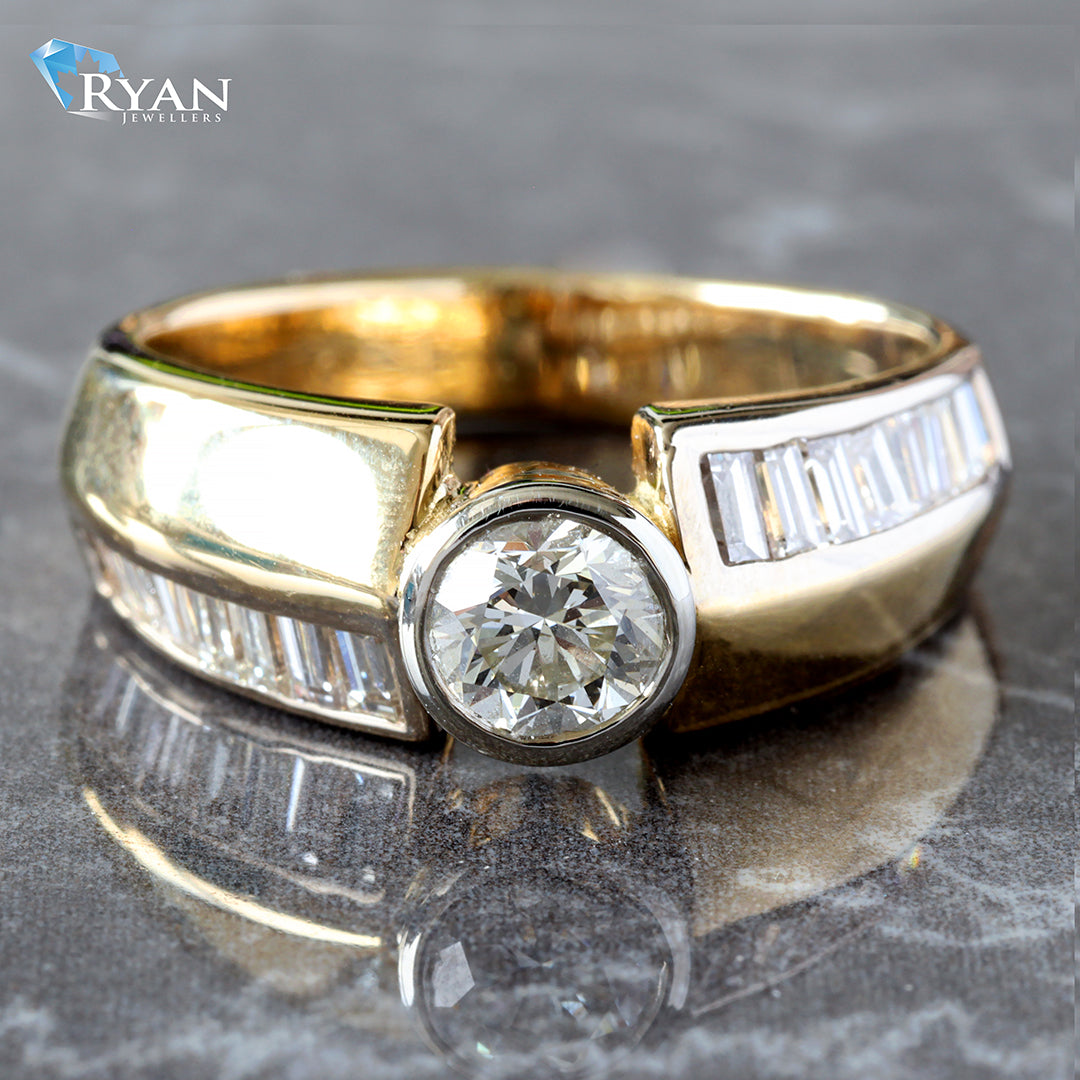 1.10CTW Round Bezel Center W/ Wide Graduated Channel Set Baguette Shoulders