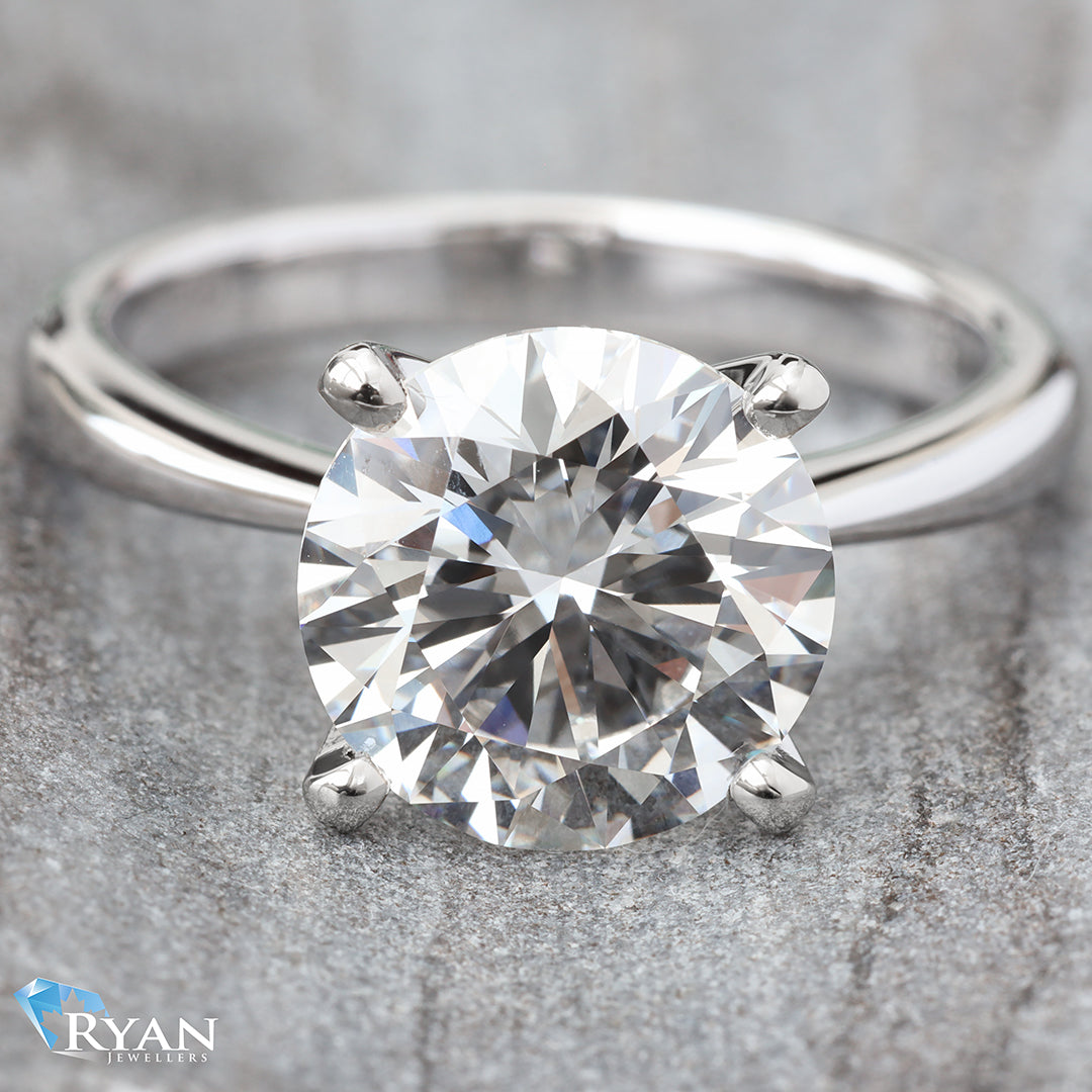 4.08CT Round Brilliant Solitaire with High Polished Tapered Shoulders Ring