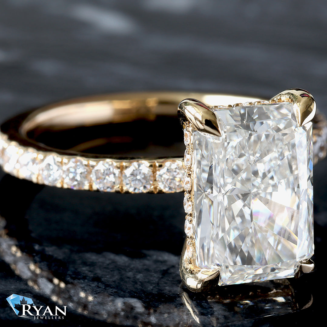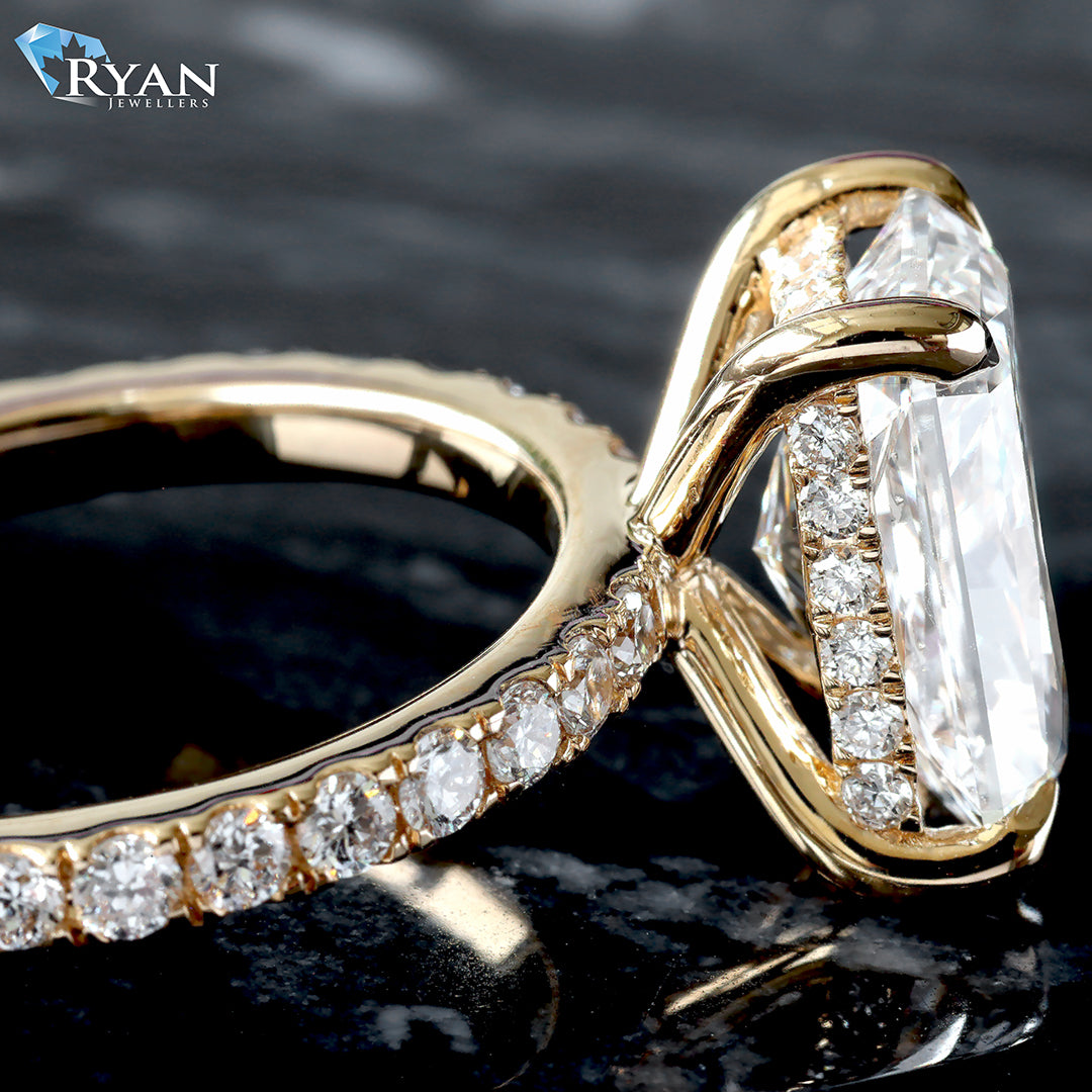4.06ctw Radiant Solitaire with Hidden Halo and Pave Shoulders Ring