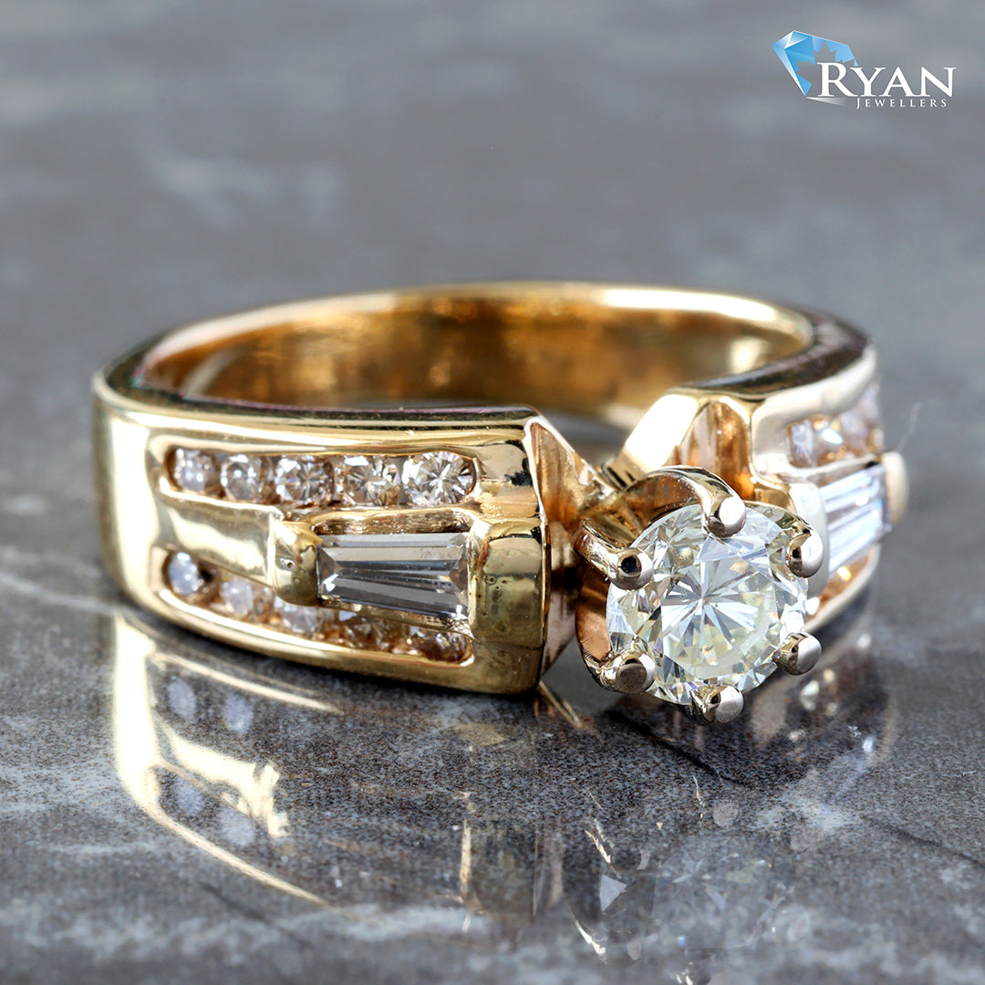 1.00ctw Six Prongs Round Solitaire with Tapered Baguette and Three Row Round Cut Shoulders