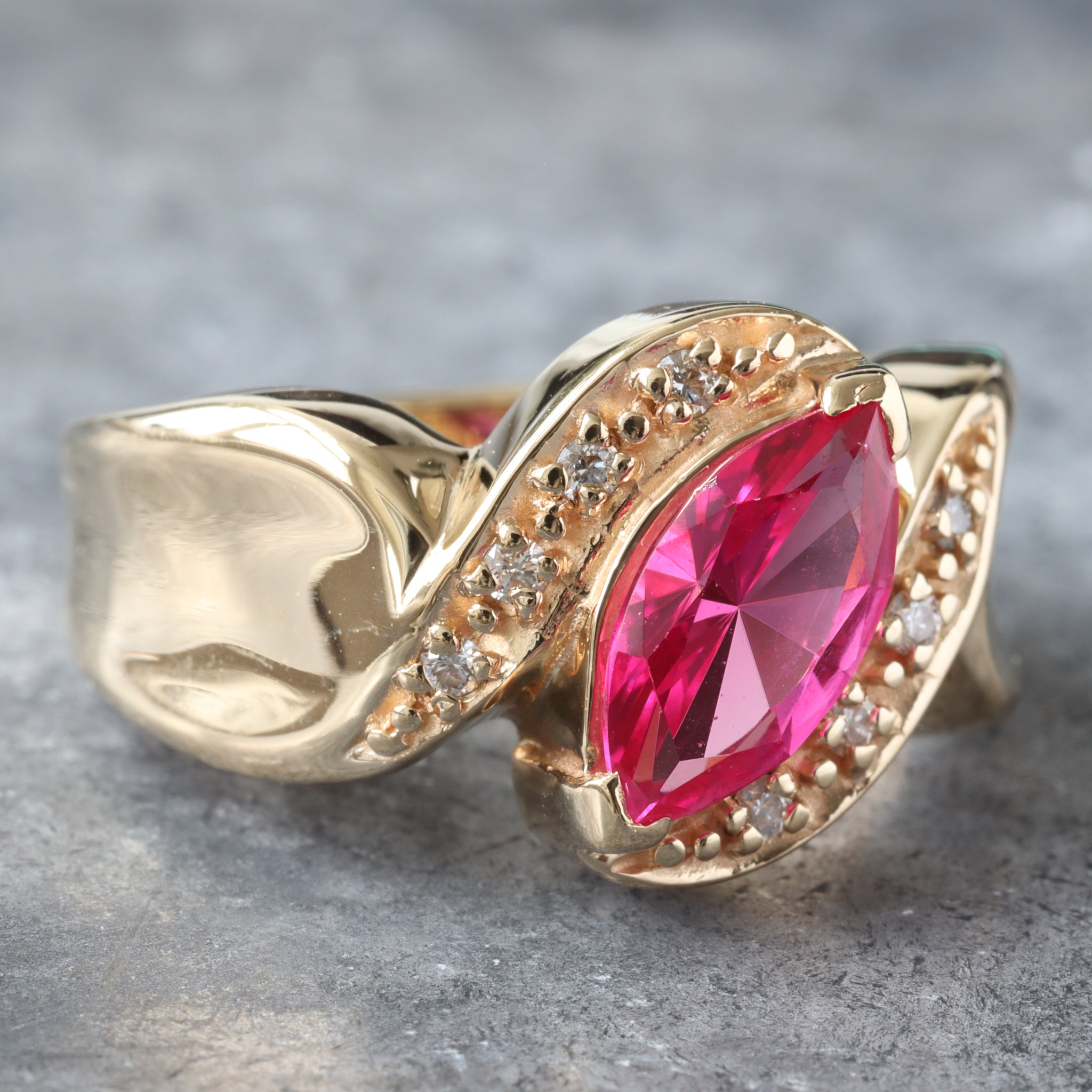 Synthetic Ruby Marquise with Small Prog Set 0.04CT Diamonds Ring