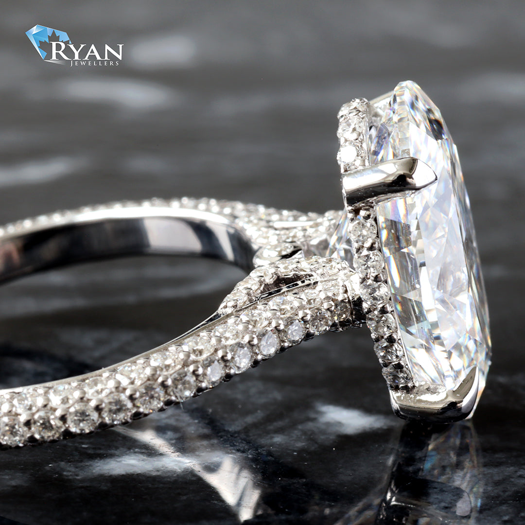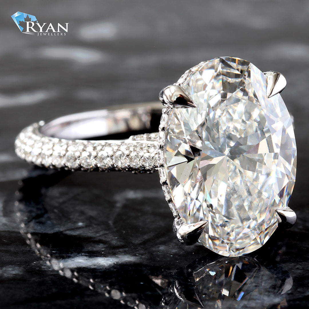 7.23ctw Oval Solitaire with Dome Pave Shoulders and Hidden Halo Ring