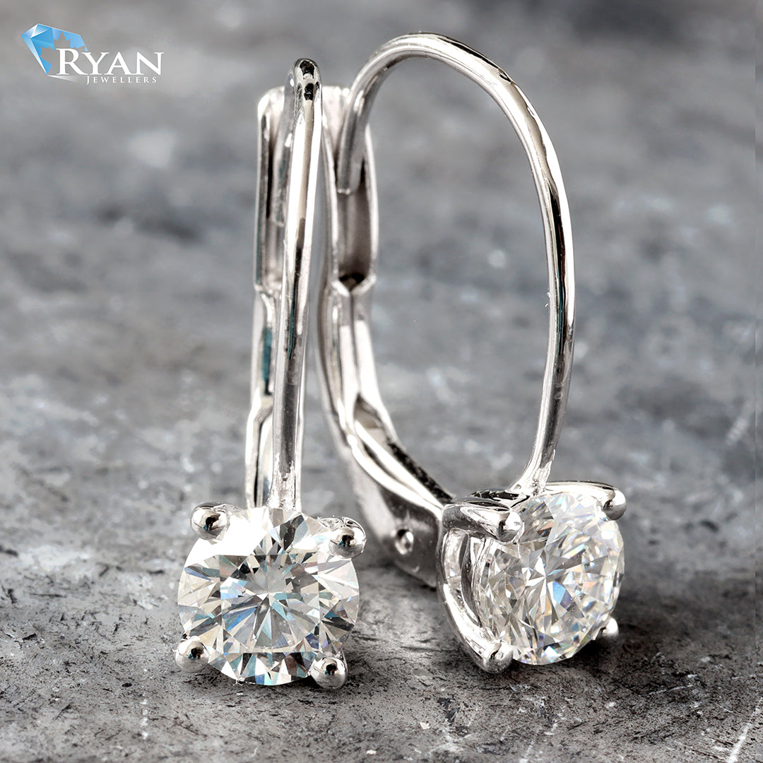 LAB DIAMOND EARRINGS GW 14K 1.03CTW FOUR PRONG SET SOLITAIRE DIAMOND DROP LEVER BACKS