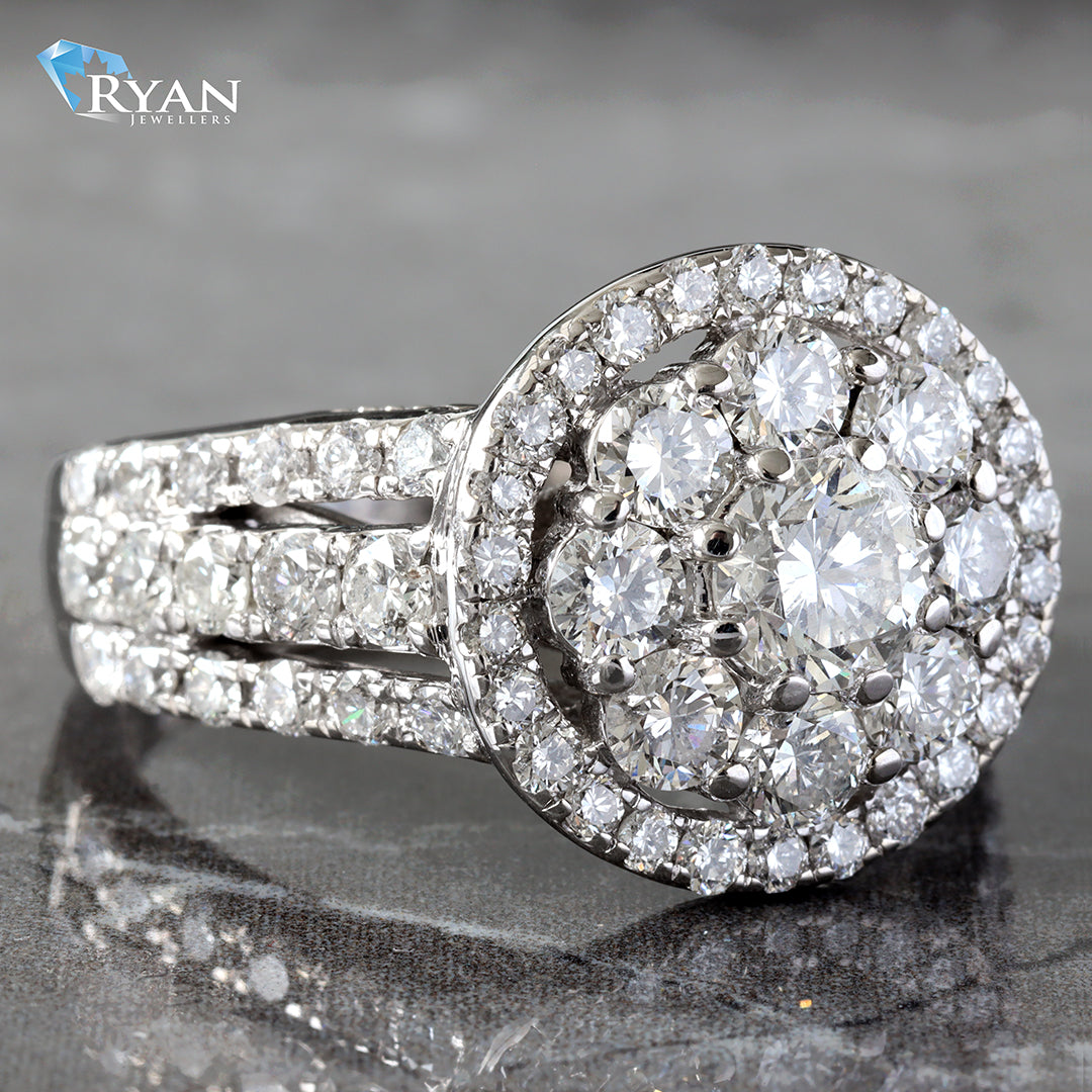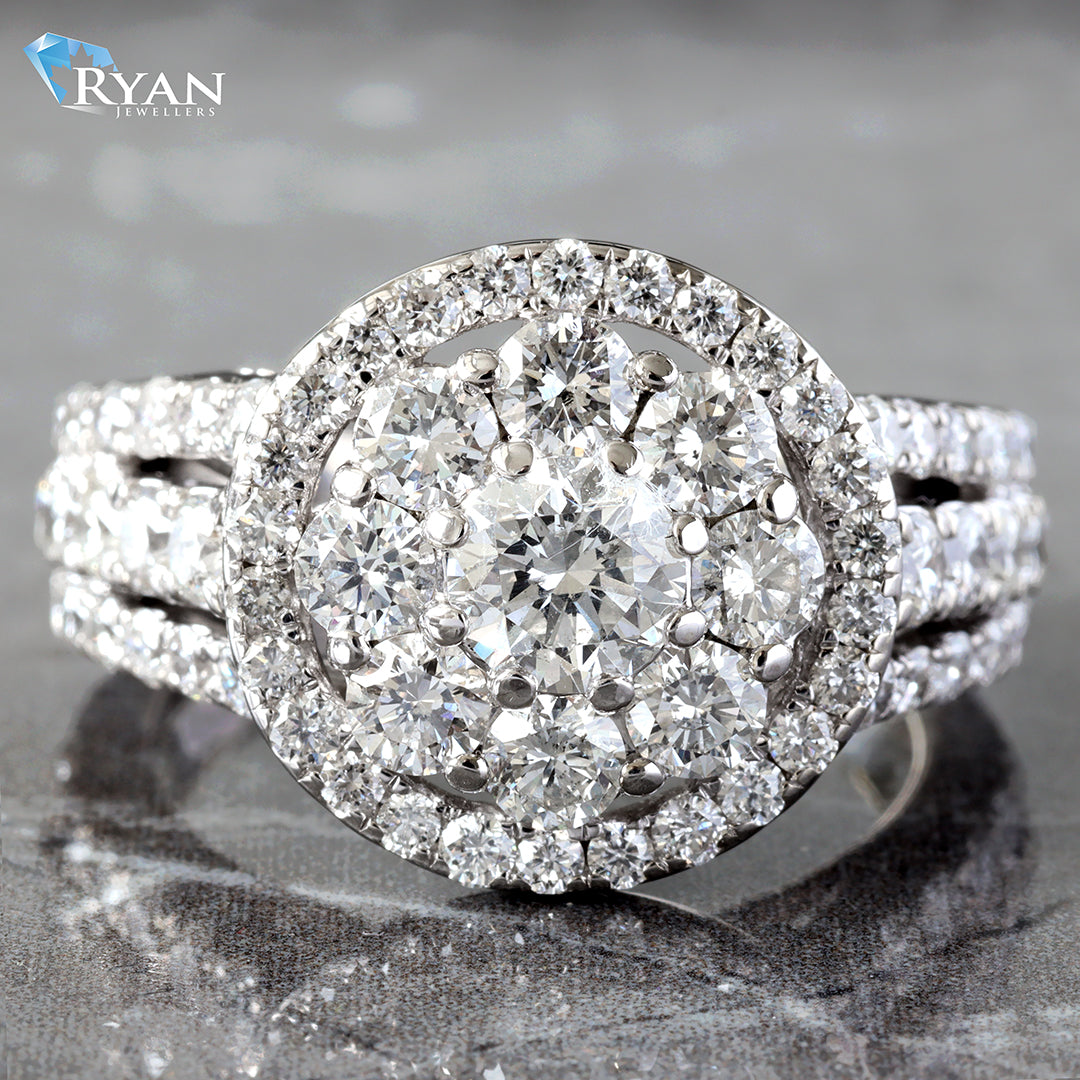 2.50CTW Natural Round Imperial Set Halo With 3 Row Pave Split Shoulders