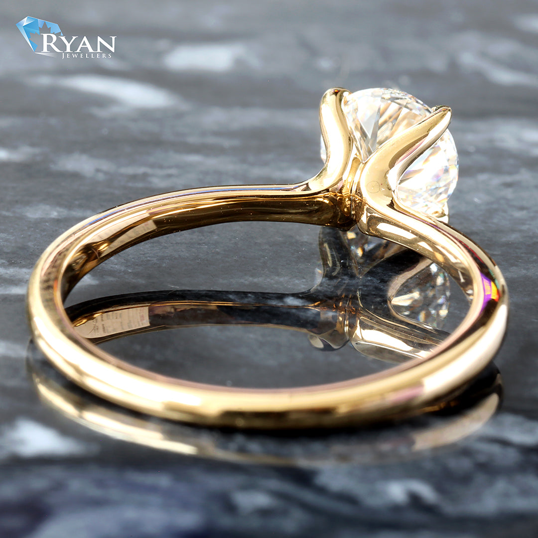 Lab Created Round Diamond Center totaling 1.01ct with a classic high polished Yellow gold mount and open basket.