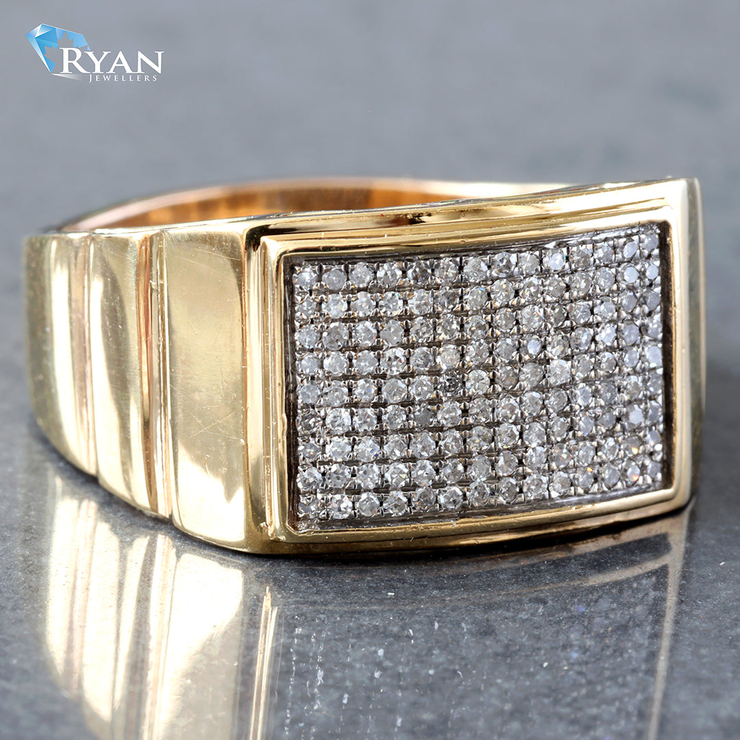 Earth Mined, 0.30 Carat Diamond Pave Men's Domed Table Top Ring With Yellow Gold High Polish Shoulders