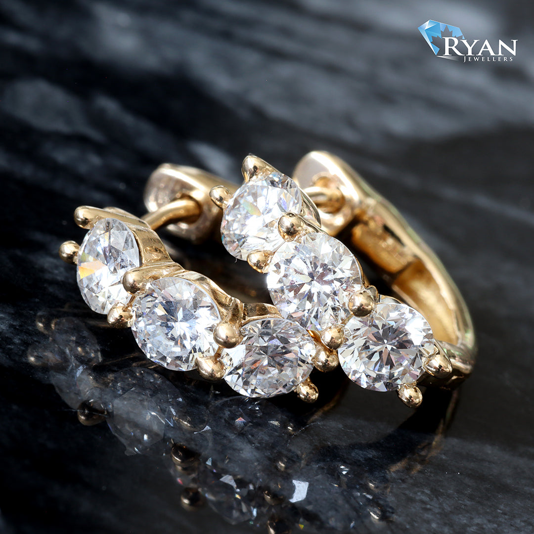 1.00CTW LAB 3 Round Gold & Diamond Huggie Hoops