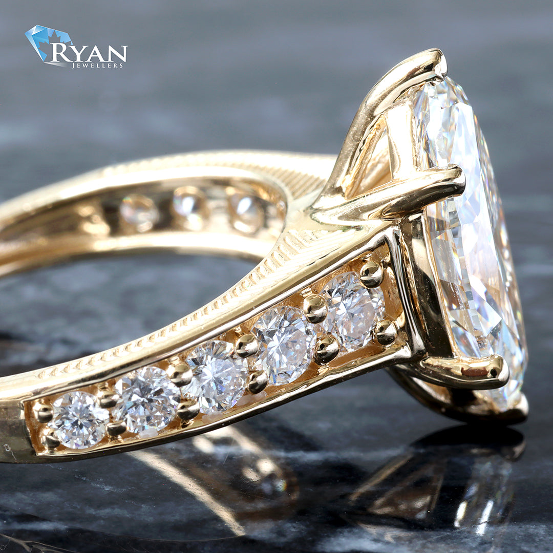 3.75CTW LAB 8 Prong Marquise Center With Graduating Tapered Diamond Shoulders & Herringbone Design Profile